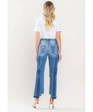 Flying Monkey - Super High Rise Seamed Contrast Panel Straight Jeans