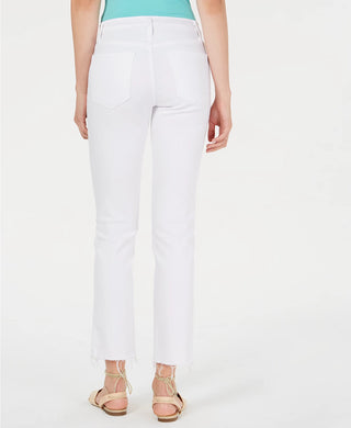 Flying Monkey Women's Button-Fly Raw-Hem Straight-Leg Jeans White Size 30