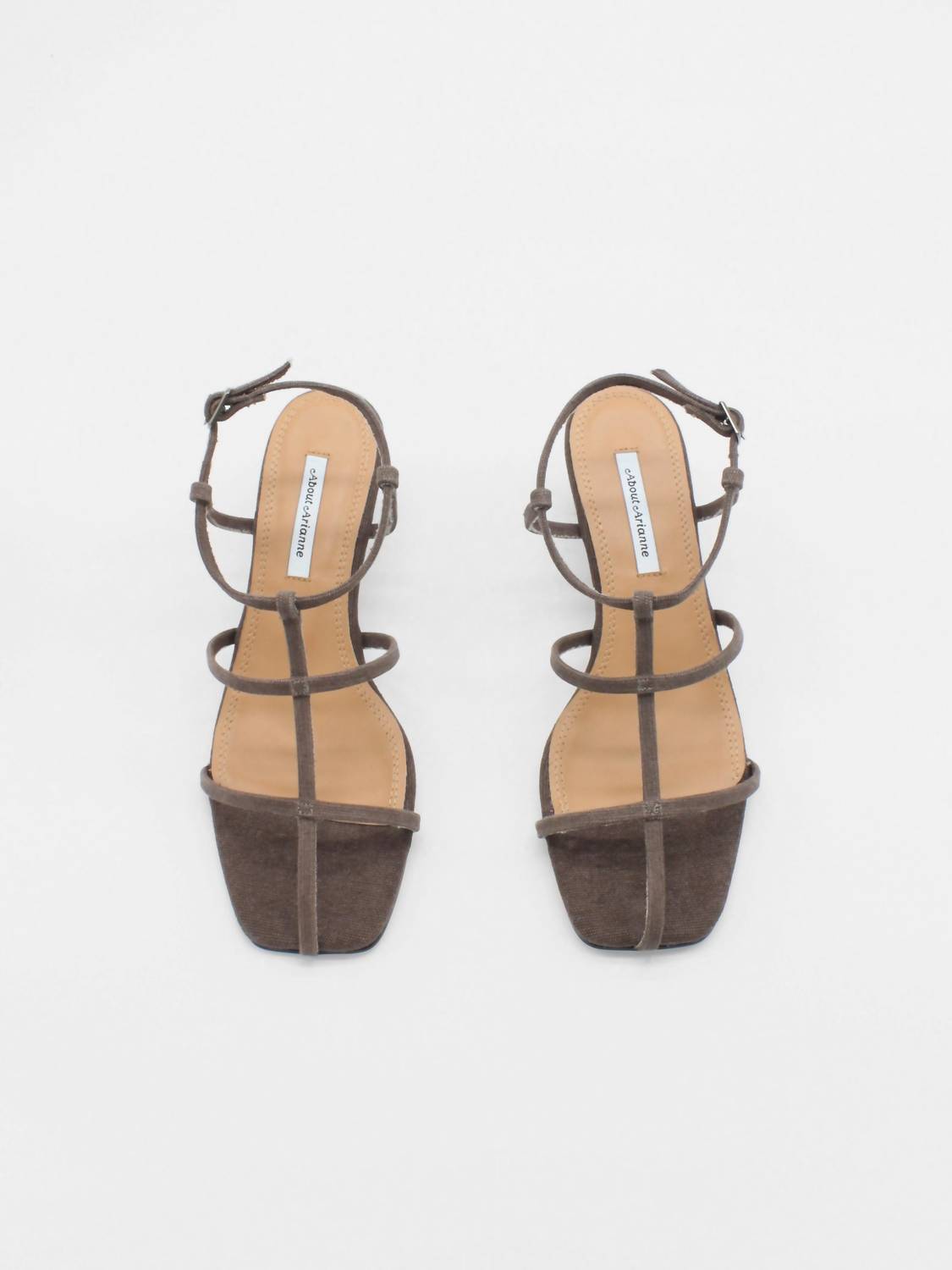 This sandal will take you from brunch to dinner and everything in between. Introducing the Women's Gene Bosc Strappy Heeled Sandal by About Arianne, a stylish addition perfect for a summer dinner party or a New Year's Eve event. Designed with brown cotton fabric, these sandals showcase a squared toe with elegant straps across the vamp and ankle, complemented by a metallic buckle. Crafted in Spain, they feature an architectural block heel measuring 1.77 inches, with a sole made of vegan resins. Elevate your look with their quiet luxury, and enjoy the comfort of a padded footbed.