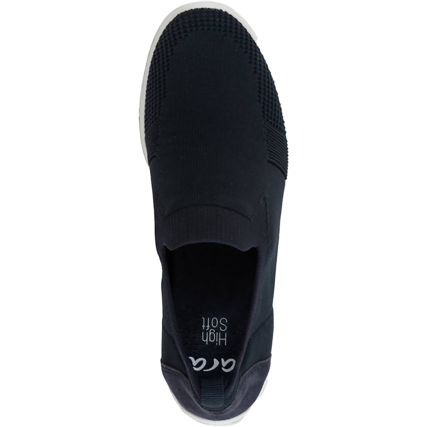 Get your daily steps in with these adorable sneakers. Step into unparalleled comfort with the Women's Leena 3 Sneaker by Ara Shoes, a perfect choice for athleisure enthusiasts. Designed for all-day wear, this slip-on sneaker features a wovenstretch fabric upper that adapts seamlessly to your foot, providing a superior fit with Ara’s Fusion4 Technology. The sneaker includes a removable footbed for custom orthotics and a Dynergy sole that dynamically responds to pressure for instant support. Available in a chic navy/white color, it's both lightweight and breathable, allowing you to stay active without fatigue.