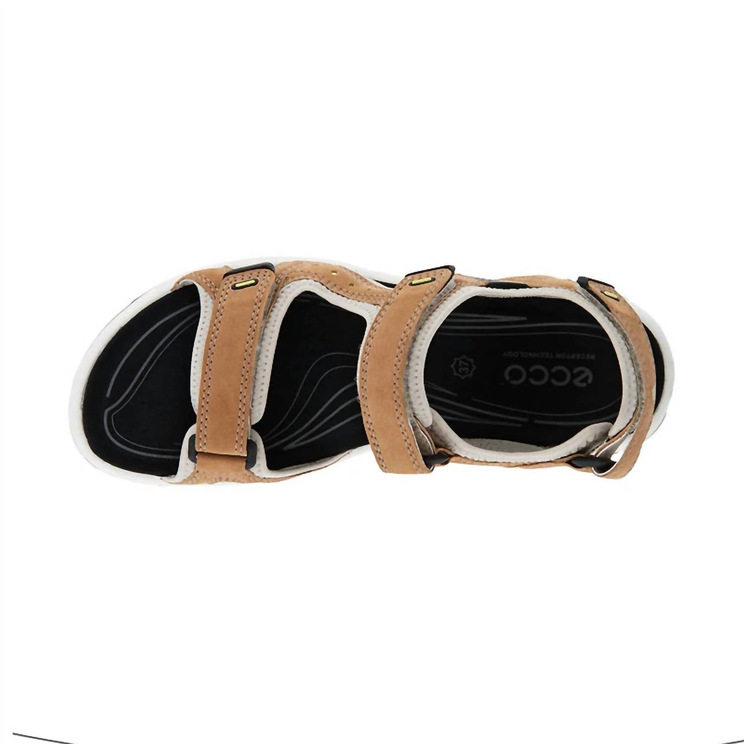 This sandal will take you from brunch to dinner and everything in between. Experience superior walking comfort with the ECCO Women's Offroad Lite Cashmere Sandal. Crafted from durable ECCO YAK leather, this brown sandal features three adjustable straps for a customizable fit. Designed with a microfibre-covered footbed and incorporating ECCO FLUIDFORM™ Direct Comfort Technology, it provides cushioning and flexibility, perfect for your vacation adventures. Enjoy excellent stability with RECEPTOR® Technology and a rugged rubber outsole for reliable grip across all terrains. Ideal for a minimalist spring look with its open toe and flat heel design.