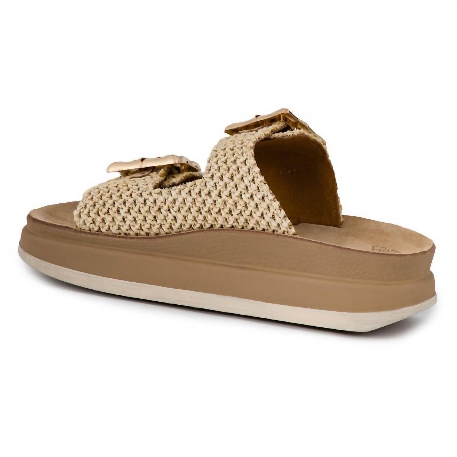 Elevate your summer wardrobe with the Women's Bamboo Sandals by Fantasy Sandals, perfect for boho chic vacation ensembles. These sandals feature adjustable straps with a buckle closure and a 2" platform heel, crafted from a raffia material with leather/synthetic upper and lining. Made in Greece, they boast an extra cushioned, sweat absorbent, antimicrobial footbed and Flexsole Technology for lightweight flexibility. Ideal for those seeking both style and comfort, these sandals are a versatile choice for effortless day-to-night transitions.