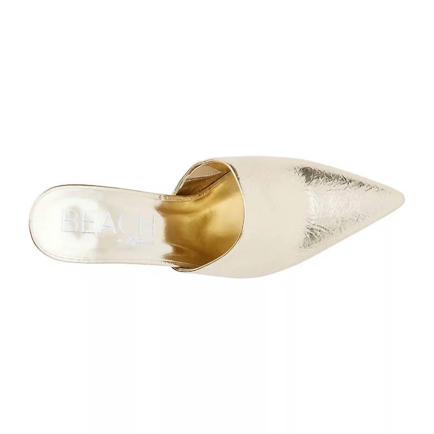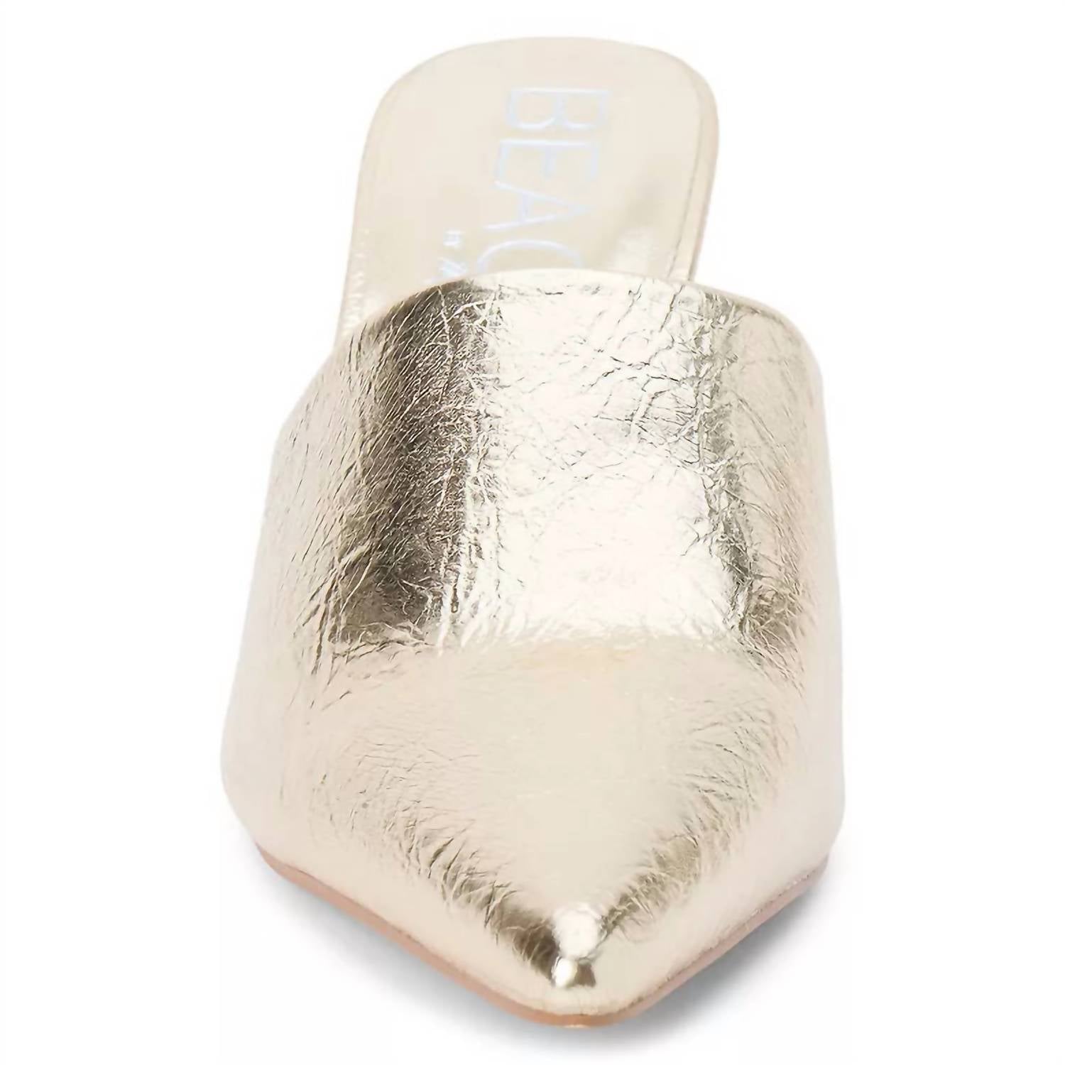 Stylish, comfy, and versatile. We can't find anything wrong with these. Step into sophistication with the Women's Garret Heeled Mule by Matisse, a stylish choice in shimmering gold. These mules feature a pointed toe and a graceful slip-on design with a mid-height 3-inch stiletto heel, providing both elegance and height. Crafted from quality faux leather, they are lined with the same material and completed with a manmade outsole and a padded insole for comfort. Designed for whole sizes; for half sizes, consider ordering the next size up.