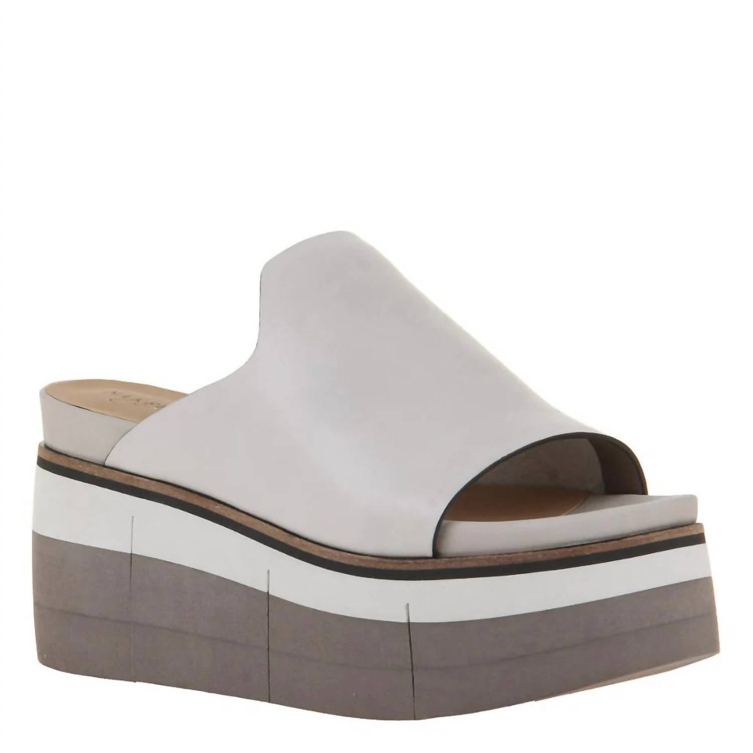 Flowy dresses, cropped pants, and even jumpsuits... this sandal works with them all! Step into effortless style with the Naked Feet Women's Flow Platform Sandal in Mist, perfect for dinner parties and spring outings. This women's slip-on features an open toe and is crafted with genuine luxe leather, highlighted by inked edges for a minimalist, boho aesthetic. The platform heel stands at 1.97 inches atop a 2.87-inch layered EVA sole, offering a blend of athleisure comfort and modern elegance. With foam padded socks and flex grooves, these sandals promise easy-wearing comfort all season long.