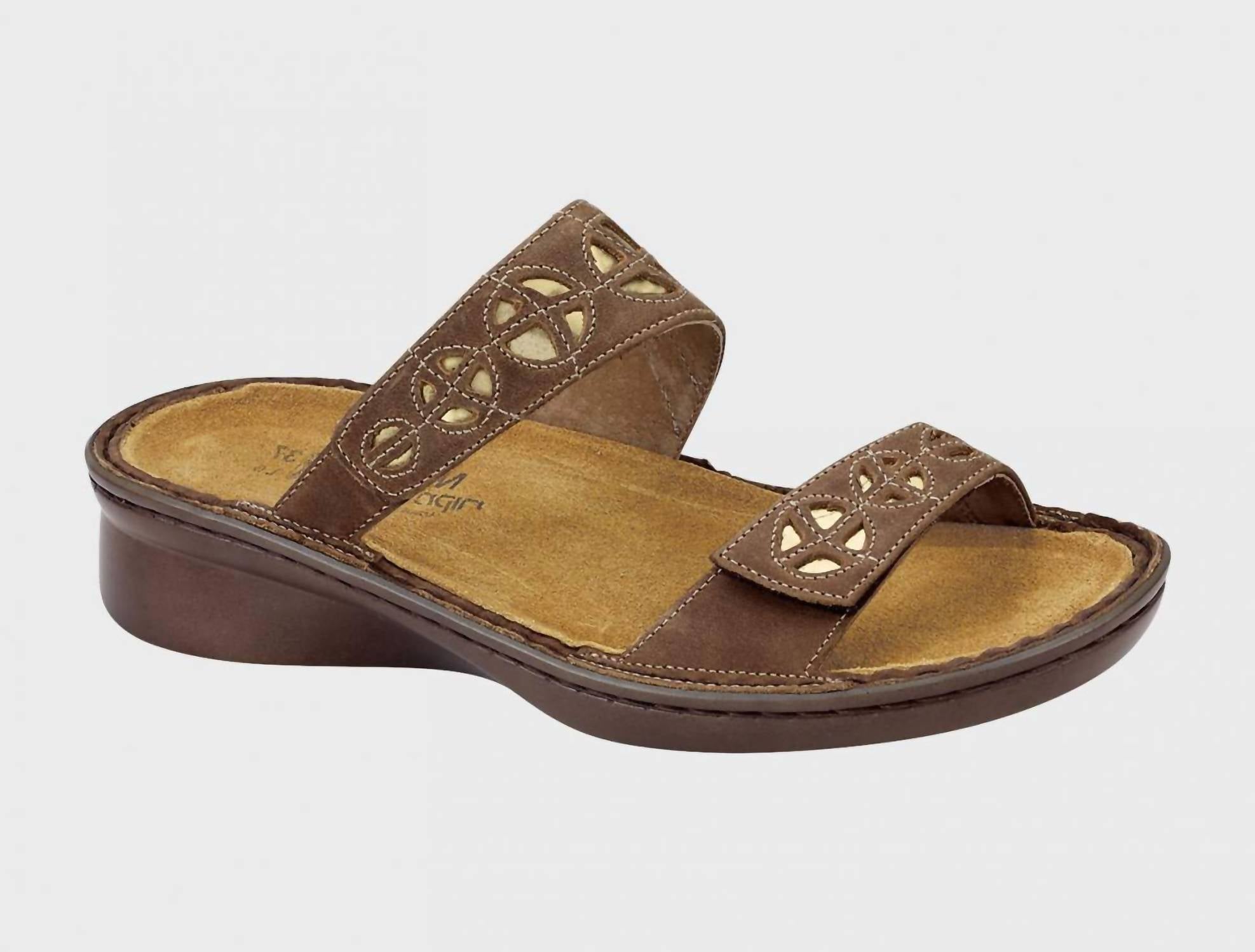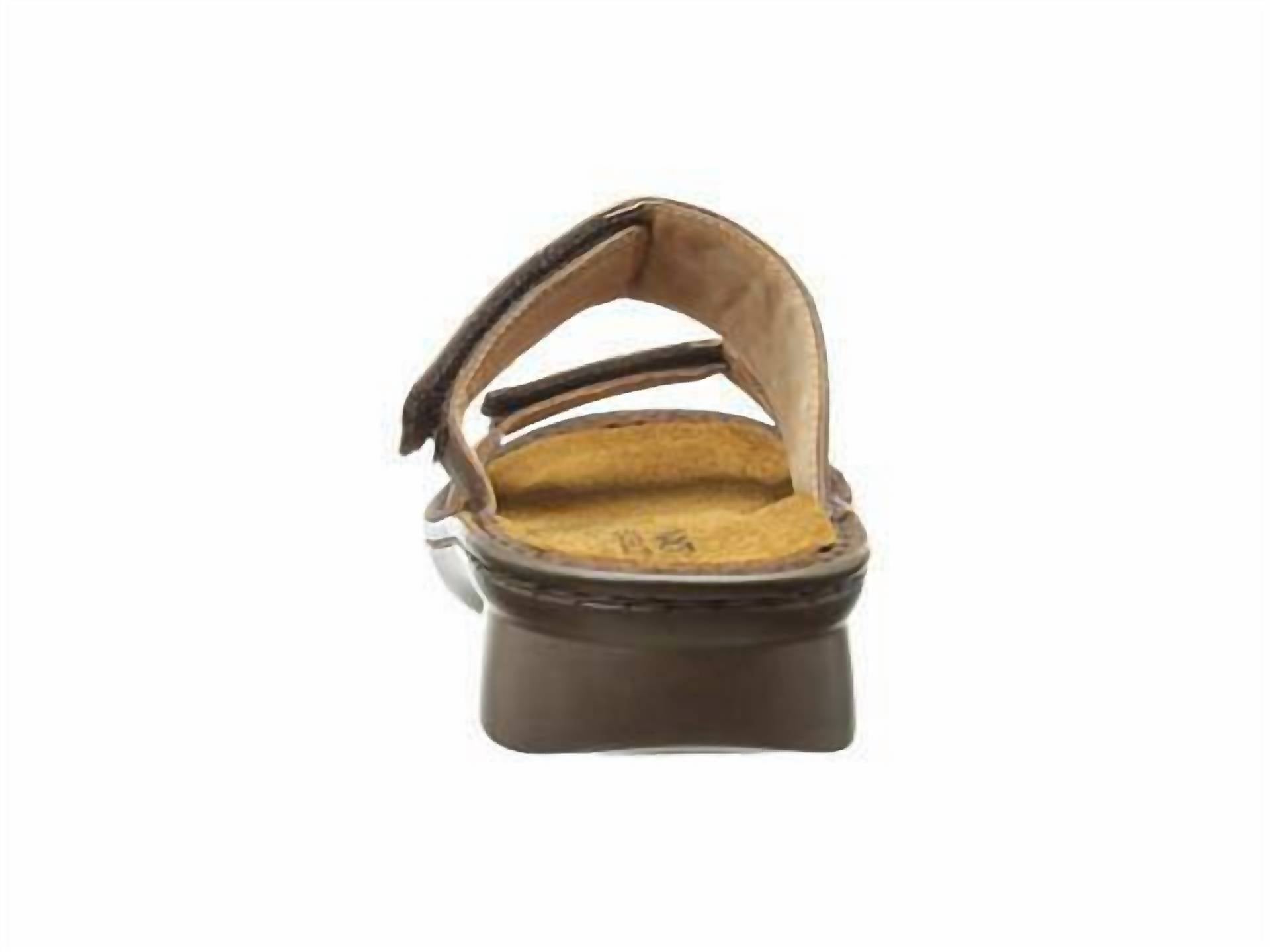 Classicly cute and all-day-wearable. We love this sandal. Experience the perfect blend of style and comfort with the Women's Cornet Dress Sandal by NAOT, a minimalist staple for your summer wardrobe. Featuring an open toe and flat heel, this sandal presents chic stitch designs with a contrasting polyurethane underlay and a double hook and loop closure for easy adjustability. The removable anatomic cork and latex footbed, wrapped in pampering suede, molds to your foot for personalized comfort, while the 1.5" polyurethane sole offers lightweight durability. Whether you're heading to a dinner party or enjoying a casual day out, these brown sandals ensure a comfortable and fashionable experience.