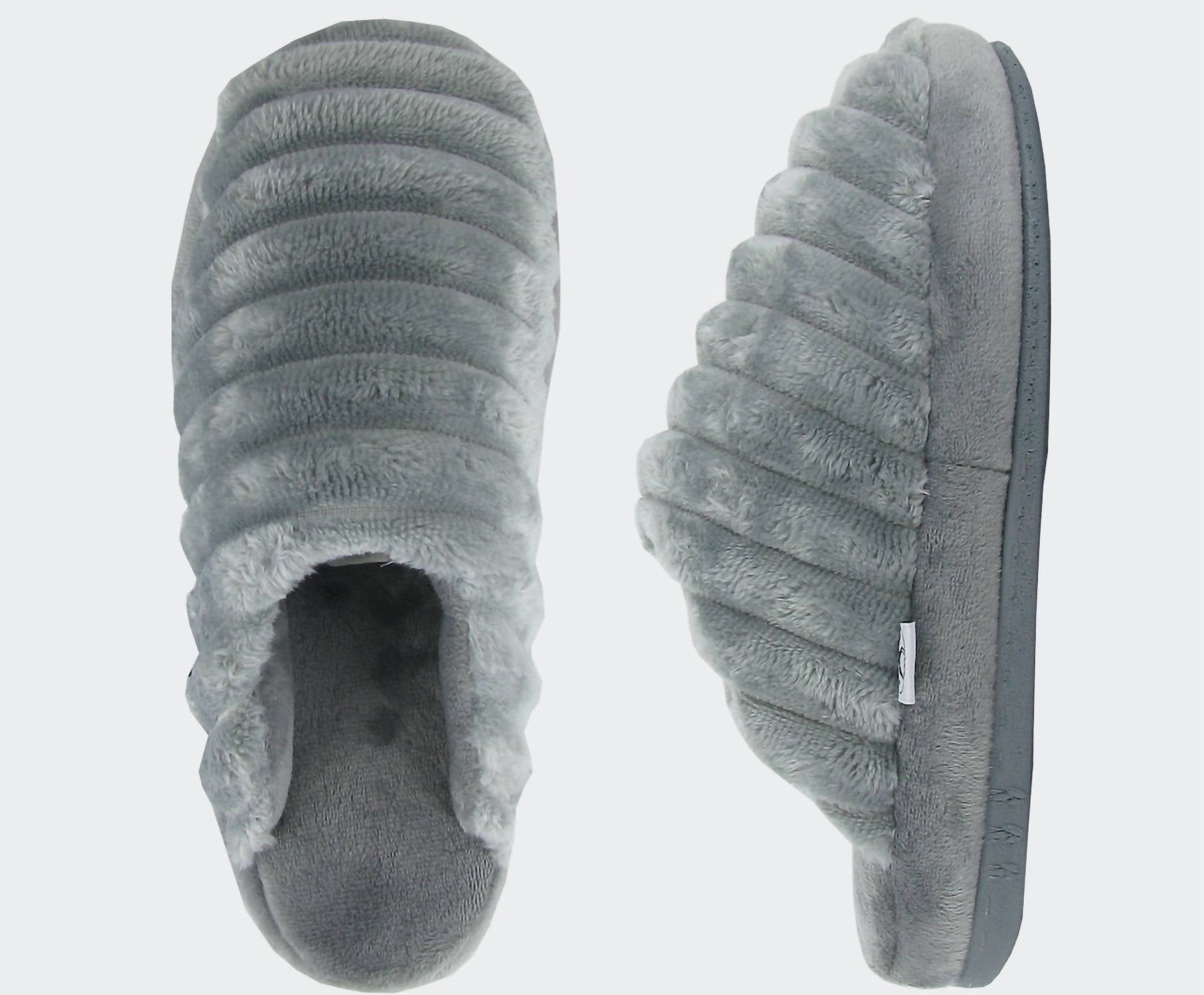 Pair these with a cozy robe and we call this loungewear luxe. Experience ultimate comfort with the Women's Peaceful Slipper by NAOT, perfect for cozy winter travel. These grey slippers feature a flat heel and flat heel style, designed with a round toe shape for a relaxed fit. Crafted from polyester, they are lined with woven polyester and soft fleece, and enhanced with a mattress foam padding insole. Suitable for medium width, these vegan slippers are an ideal streetwear choice for adults seeking warmth and support.