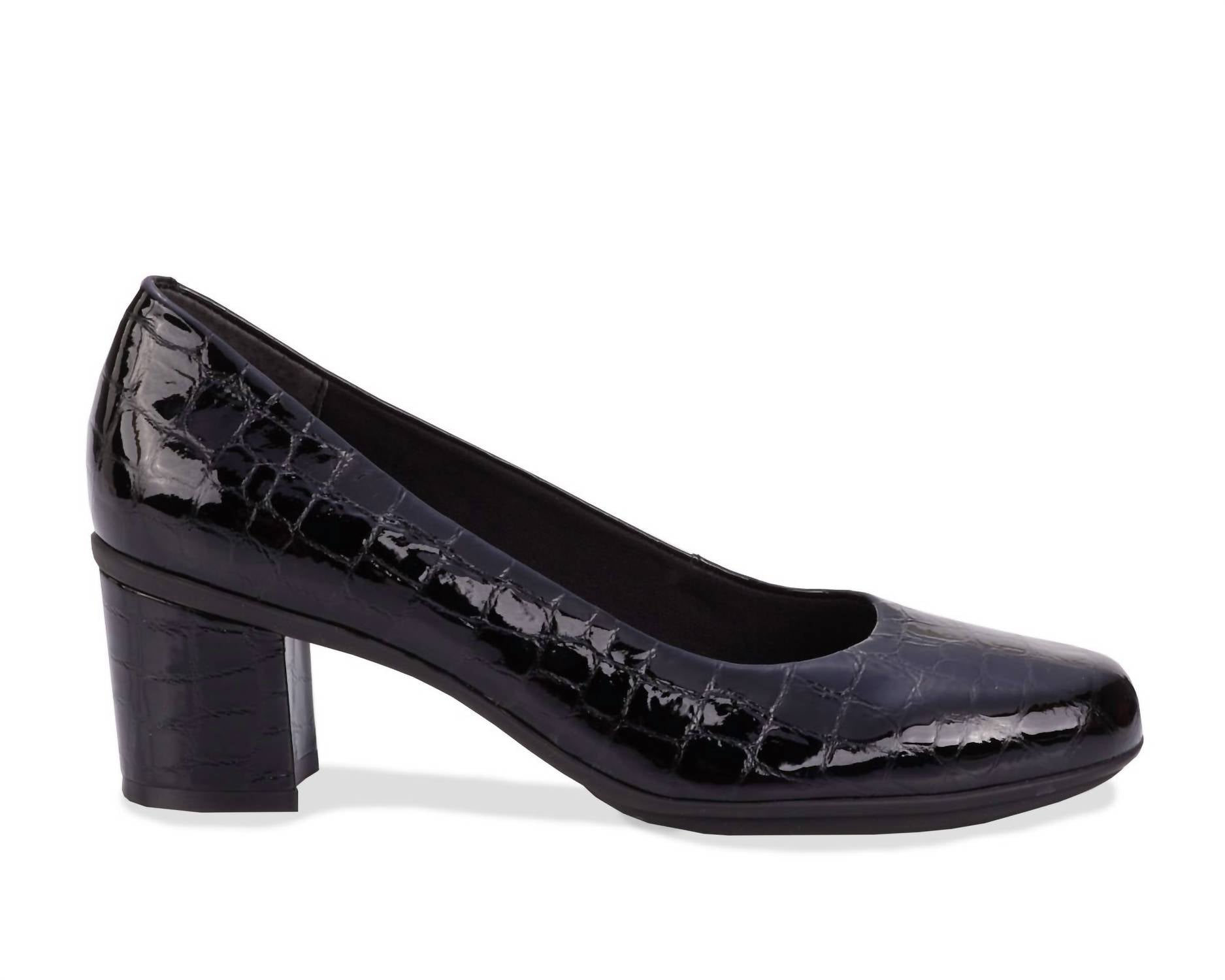 Pair these beauties with your favorite skinny jeans or dress for a night out on the town. Step into elegance with the Women's Paula Heels by Ros Hommerson, perfect for any evening event. Crafted from sleek black patent leather, these heels feature an almond toe shape for a sophisticated look. The block heel design offers comfort, standing at a low 2-inch height, ideal for all-day wear. Embrace the Boho Chic trend this summer with these stunning heels.