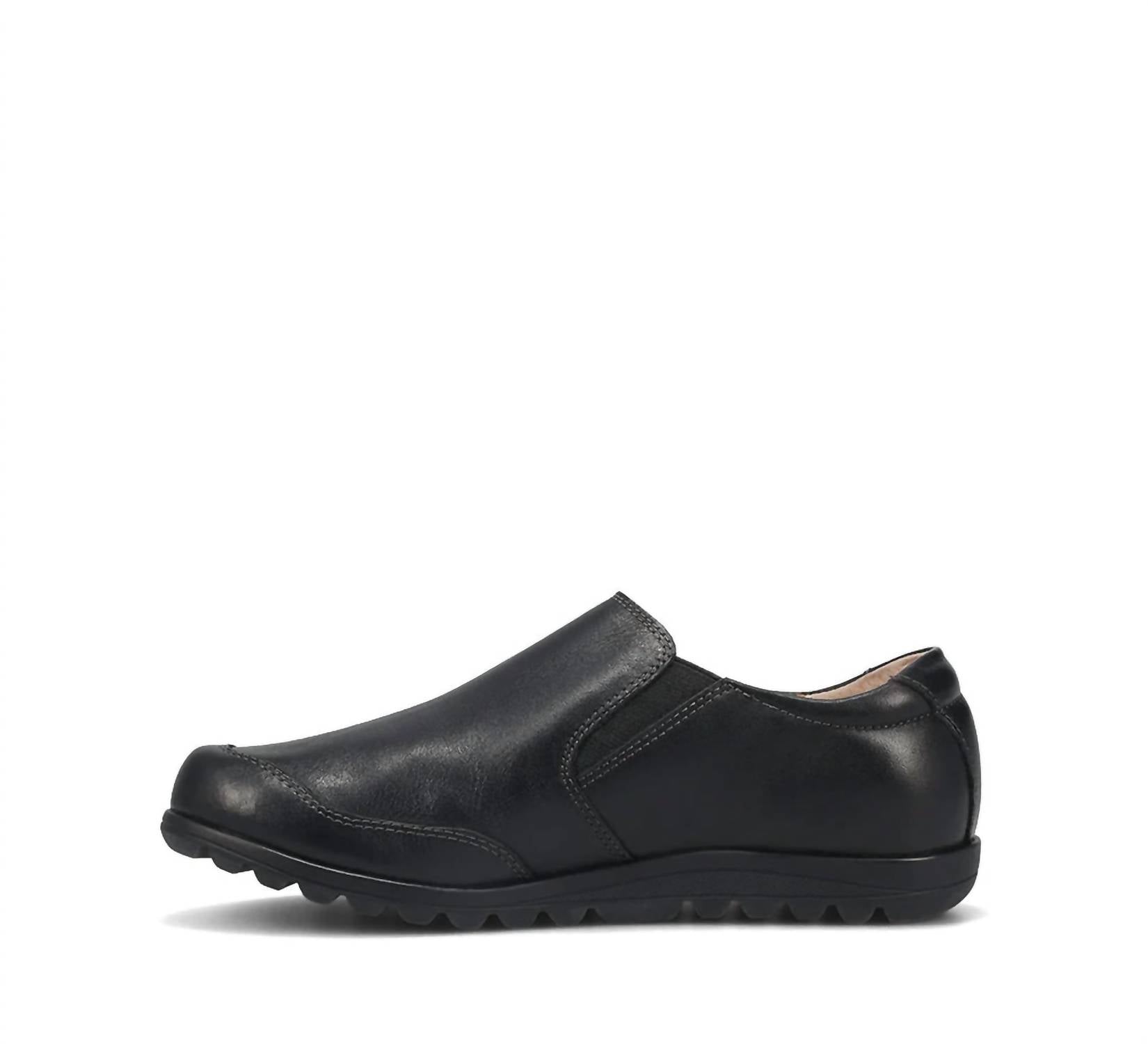 Step into comfort and style with the Women's Blend Slip-on Shoes by Taos, a perfect choice for a summer vacation trend. Crafted with a leather upper and featuring premium microfiber lining, these shoes offer a minimalist round toe design for a chic look. Curves & Pods® removable footbed ensures all-day arch and metatarsal support, complemented by an elastic gore panel and bungee closures for a customized fit. The durable, flexible rubber outsole and a low 1.75" flat heel complete the shoes, making them an ideal addition to any fashionable wardrobe. Care instructions: Buff with a leather cleaner or polish and wipe off with a dry cloth.