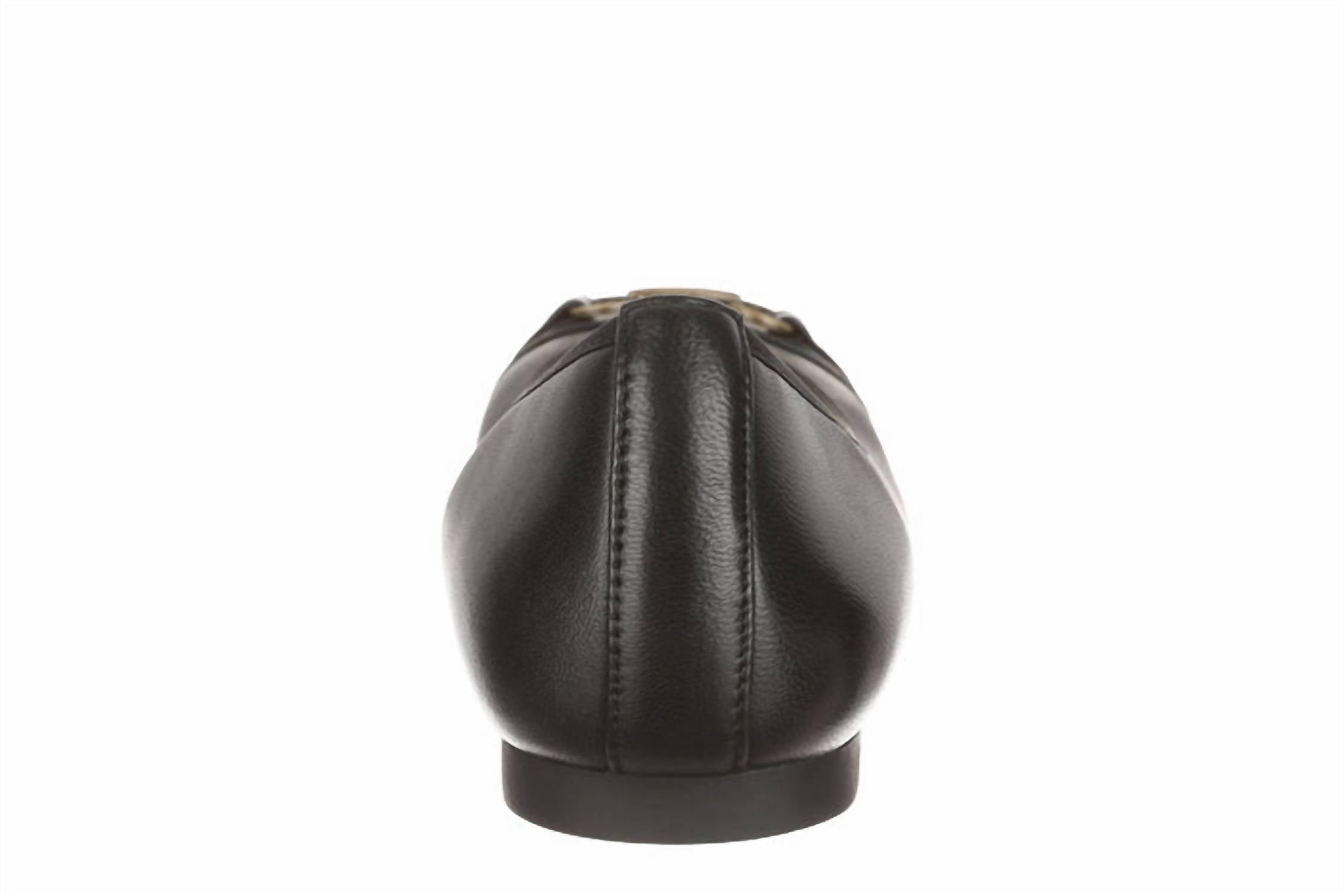 Step into elegance with the Women's Delanie Dress Shoes by VIONIC, a minimalist flat ideal for spring occasions. Featuring leather uppers, these black flats boast a classic round toe and are enhanced with distinctive metal hardware. The firm yet flexible removable microfiber-covered EVA orthotic insert, complemented by a TPR outsole, features Vio-Motion Technology to support natural alignment. Perfect for a back-to-school look with a touch of equestrian charm.