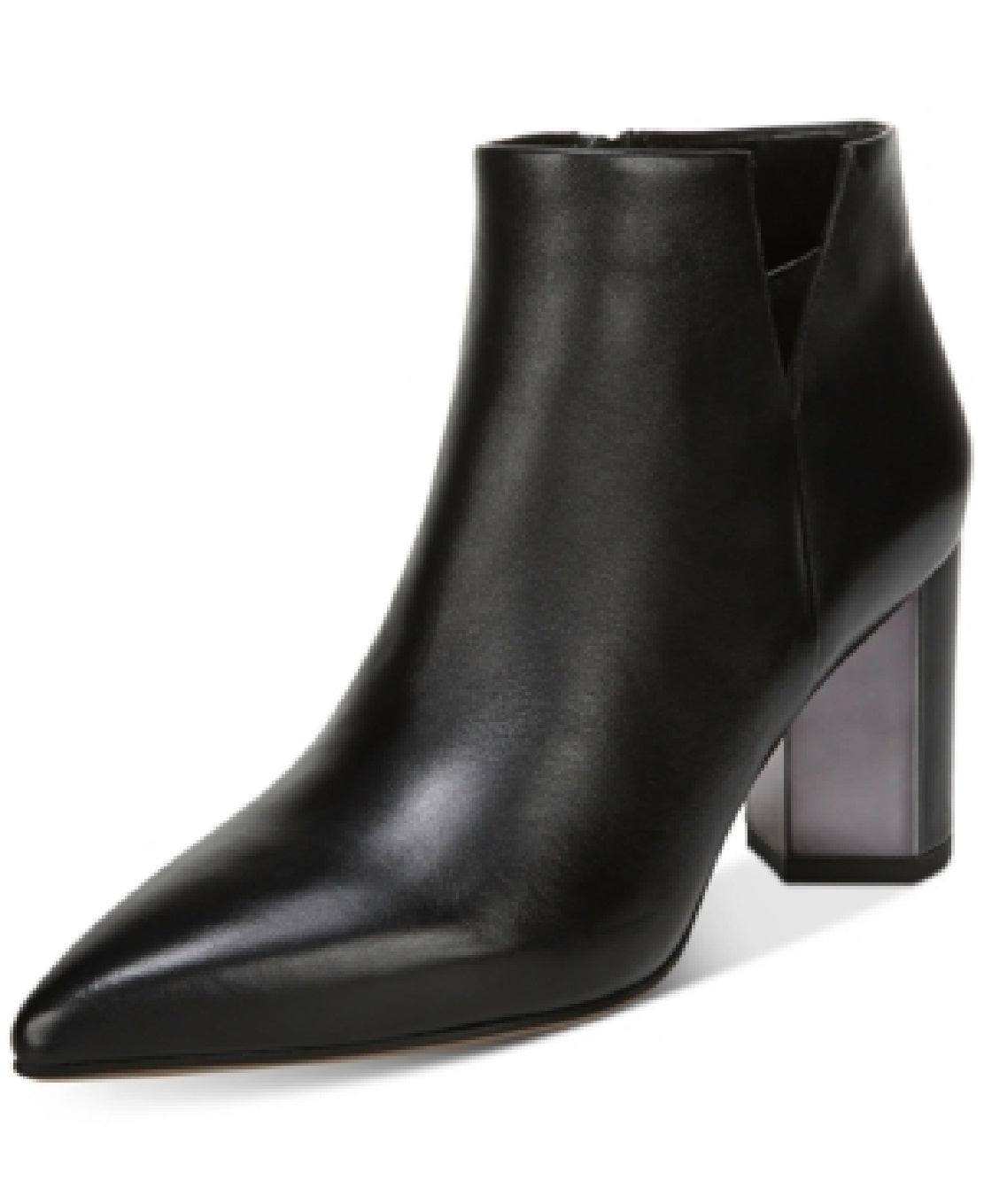 Franco Sarto brings bold angles to dressy looks in the geometric block heel| V-notch cutouts and chic pointed-toe profile of the gorgeous Nest booties.| 3 block heel| Pointed-toe ankle booties with inner ankle zipper closure| V-notch cutout at side| Leather upper; manmade lining; manmade sole| Imported