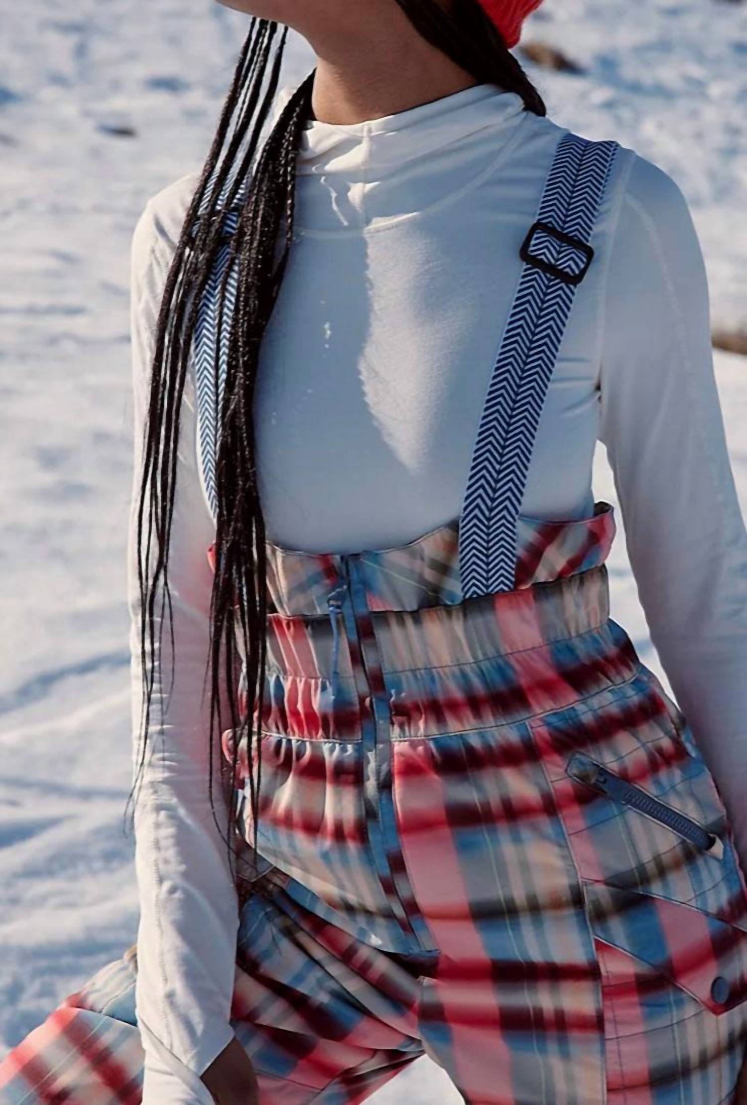 Step into adventure with the All Prepped Printed Bib Jumpsuit by Free People, a vibrant choice for cold-weather sports. Crafted with a relaxed fit through the legs, it features a high-rise waist and is composed of lightweight fabrication inclusive of PrimaLoft insulation. This red multi ski bib is engineered for outdoor performance with a full-length design and a completely waterproof exterior, adjustable elastic suspender straps, and a convenient front zip closure. Care: Machine wash cold. Measurements for size small: 30.5 in waist, 12.25 in rise, 42 in hips, 30 in inseam.