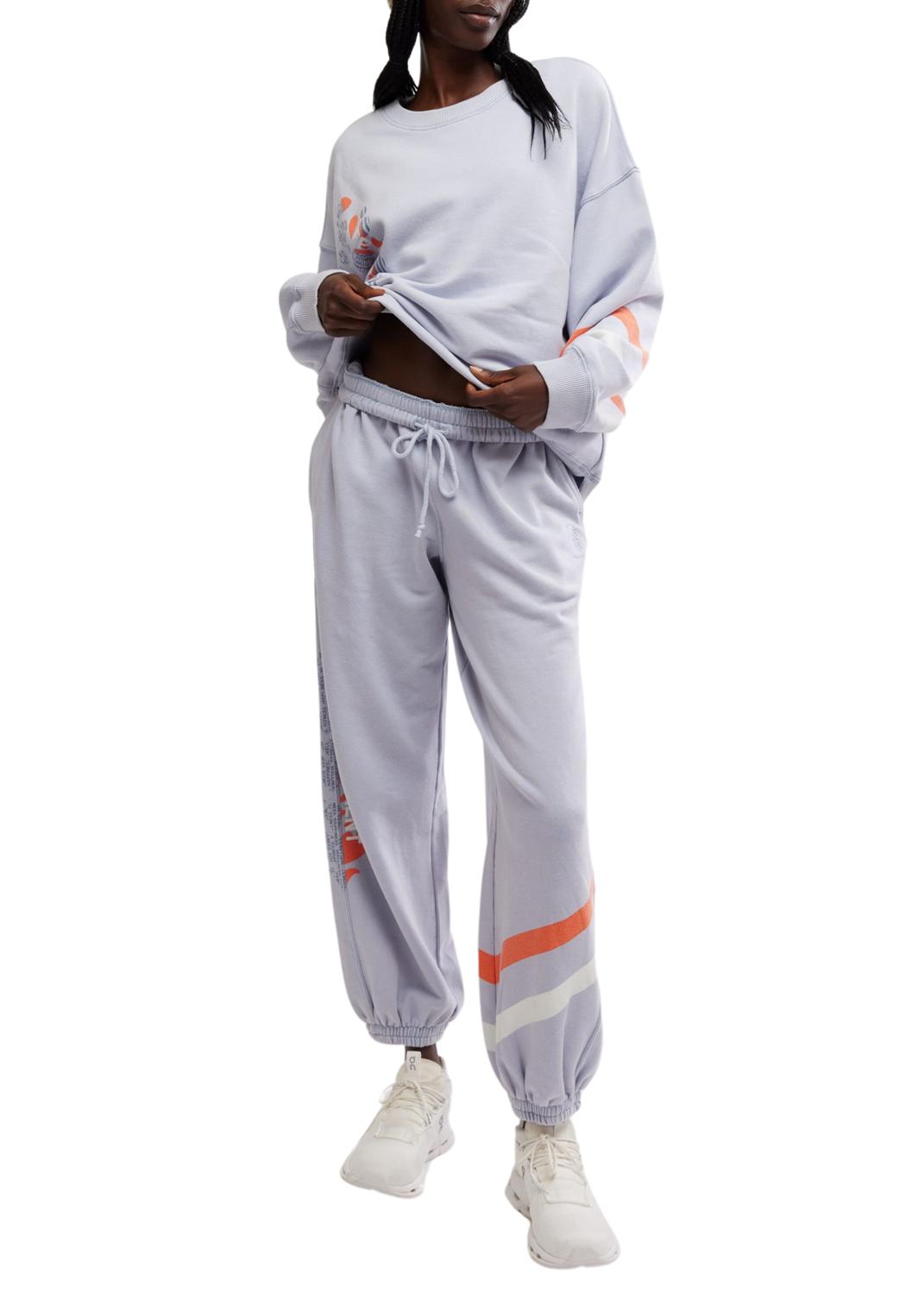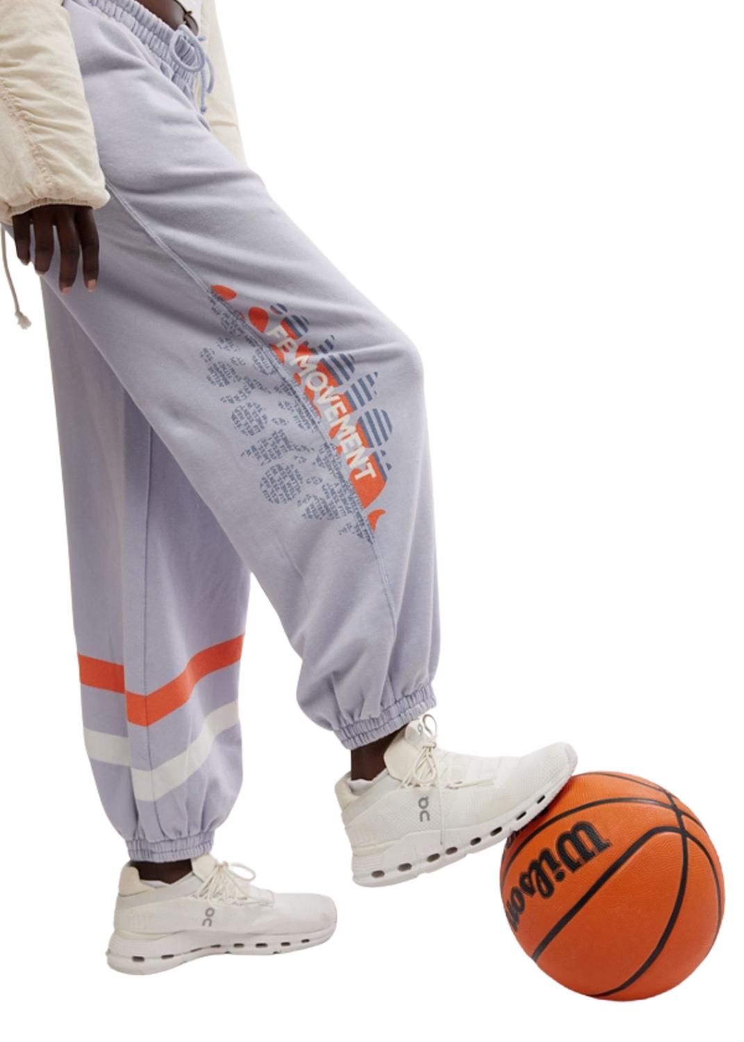 No gym necessary for these cool-girl joggers. Introducing the All Star Mid-rise Pant by Free People in a chic Steel Sport hue, designed for effortless athleisure style. Crafted with a slouchy, relaxed fit, these sweatpants feature a soft fabrication, an oversized logo, and a practical smocked elastic waistband with an adjustable drawstring. The design includes convenient hand pockets and cinched bottom hems for a tapered leg silhouette, making it an ideal activewear choice for your summer fitness routine. Perfect for the woman on the go, the button closure adds a subtle touch of functionality.
