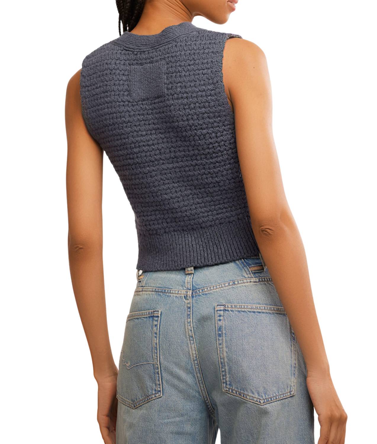 That extra layering piece you didn't know you needed! Elevate your summer wardrobe with the Ava Sweater Vest by Free People, a stylish piece in a textured Vintage Indigo hue. This vest is sleeveless, featuring a deep V-neckline and a cropped silhouette with button-front detailing. Designed with a slim, relaxed fit, it seamlessly combines comfort with contemporary style. Closure: Button closure.