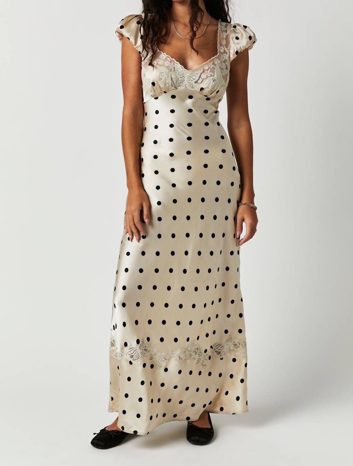 Who doesn't love a good maxi dress? This one you'll be reaching for season after season. Introducing the Butterfly Babe Maxi Dress by Free People, a standout piece in a Tea and Black Combo that embodies quiet luxury. Featuring cap sleeves and a V-neckline adorned with butterfly lace, this dress in an A-line silhouette offers sophisticated style. Made from 100% polyester, it includes a button closure and requires hand washing with line drying. Crafted for elegance at holiday parties, it reflects a timeless design perfect for special occasions.
