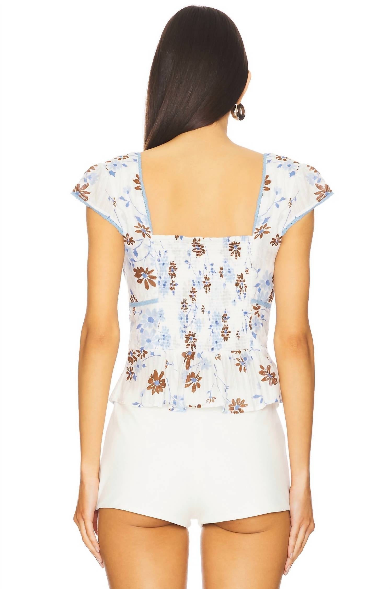 This classic, short sleeve tee will be your go-to staple this season and beyond. Elevate your wardrobe with the Call Me Baby Blouse by Free People, a delightful addition featuring cap sleeves and a charming floral print. Crafted from 100% soft cotton, this top boasts a flattering sweetheart neckline and a slim-fitting silhouette, while the tie detail at the center-front and button-front closures add a stylish touch. The smocked back and defined waist seam ensure a comfortable fit. Made from imported materials, this blouse is easy to care for with machine wash cold instructions.