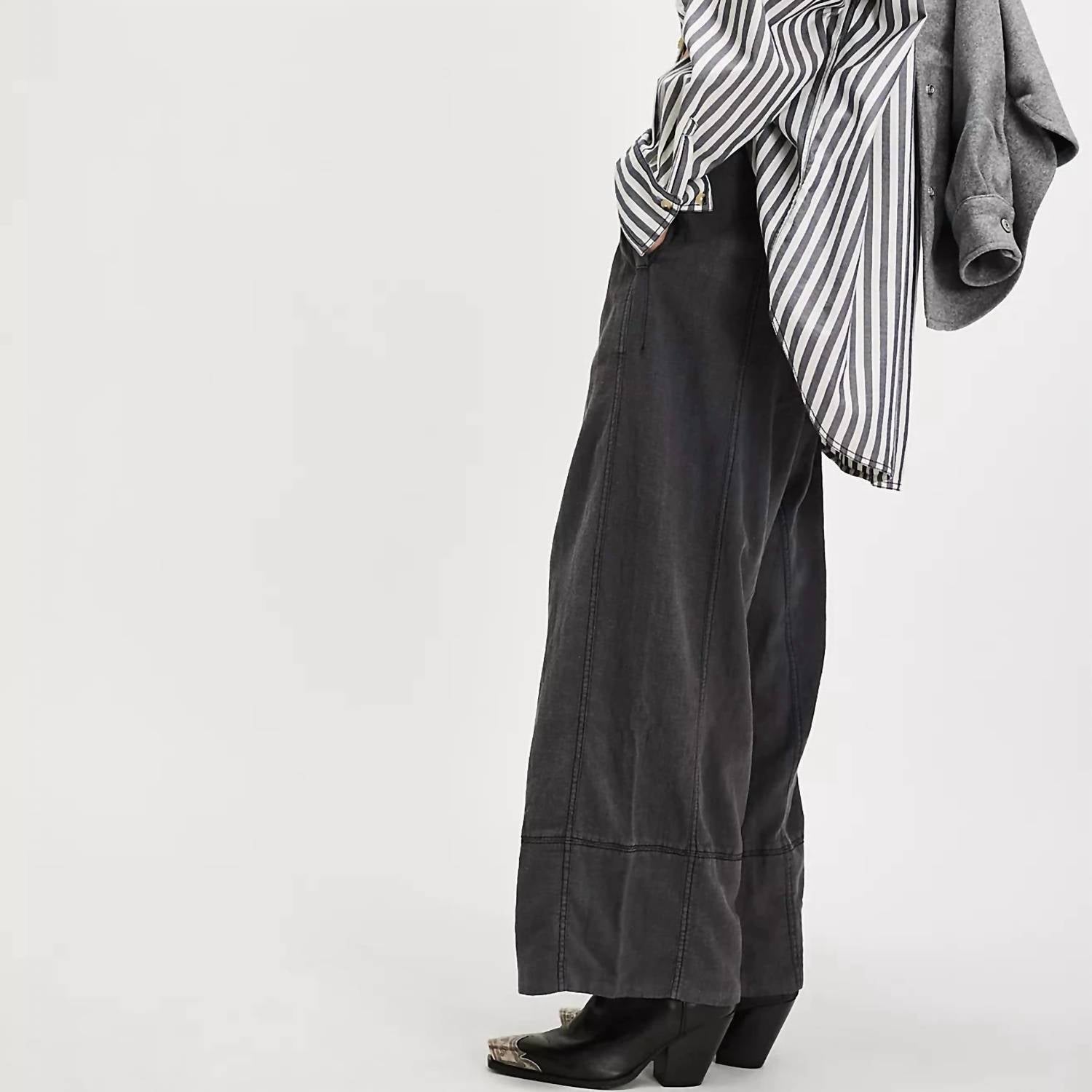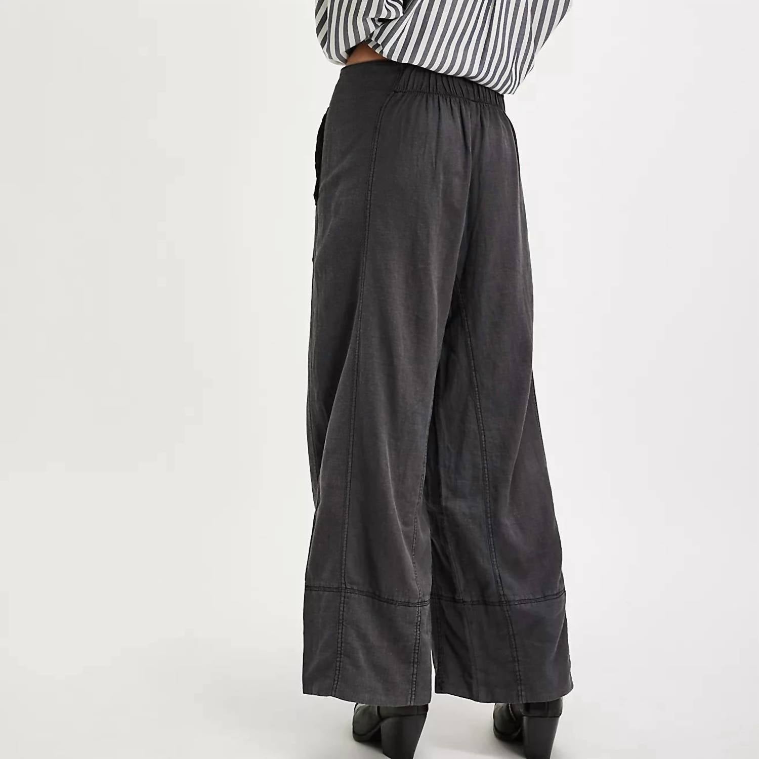 Elevate your wardrobe with the Women's Days End Linen Pull Pants by Free People, a chic and versatile choice in classic black. Designed with a mid-rise, wide-leg silhouette, these pants feature a comfortable pull-on design and handy side pockets. Crafted from a luxurious blend of 55% linen and 45% viscose, they boast a vintage-inspired wash treatment, perfect for both pointed boots or casual sneakers. With measurements for size small at a 46" waist, 47.5" hips, 13.5" rise, and 29" inseam, these pants offer a modern fit that complements any minimalist, vacation-ready ensemble.