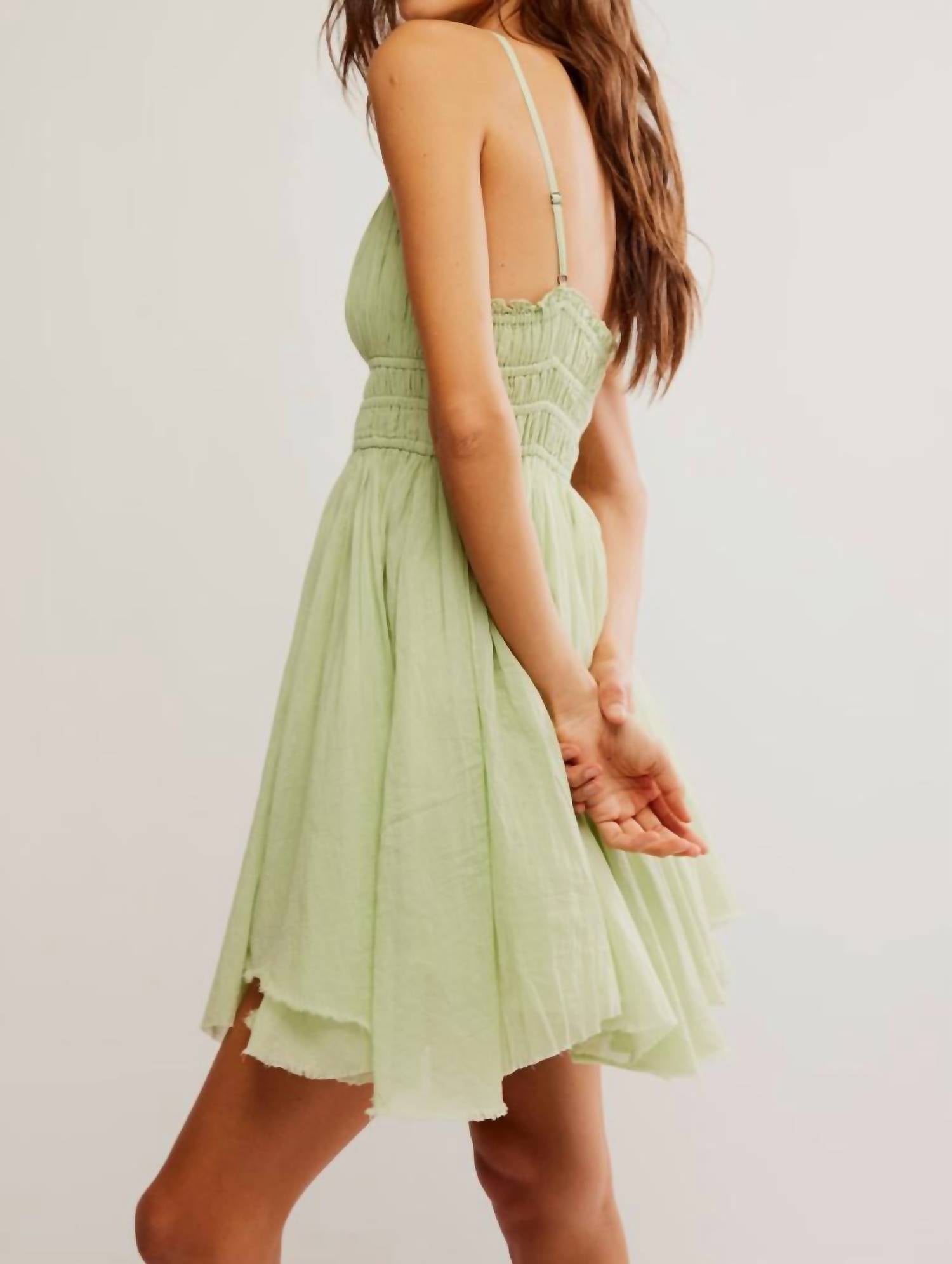 The kind of easy and flattering dress you'll be reaching for all season long. Discover the Delia Slip Mini Dress by Free People, a chic choice in Meadow Haze perfect for every occasion. Designed with a flattering A-line silhouette, this solid mini dress exudes boho chic elegance. It features a V-neck and a convenient pull-on closure, tailored for ease and comfort. Care for this summer staple by hand washing it and laying it flat to dry.