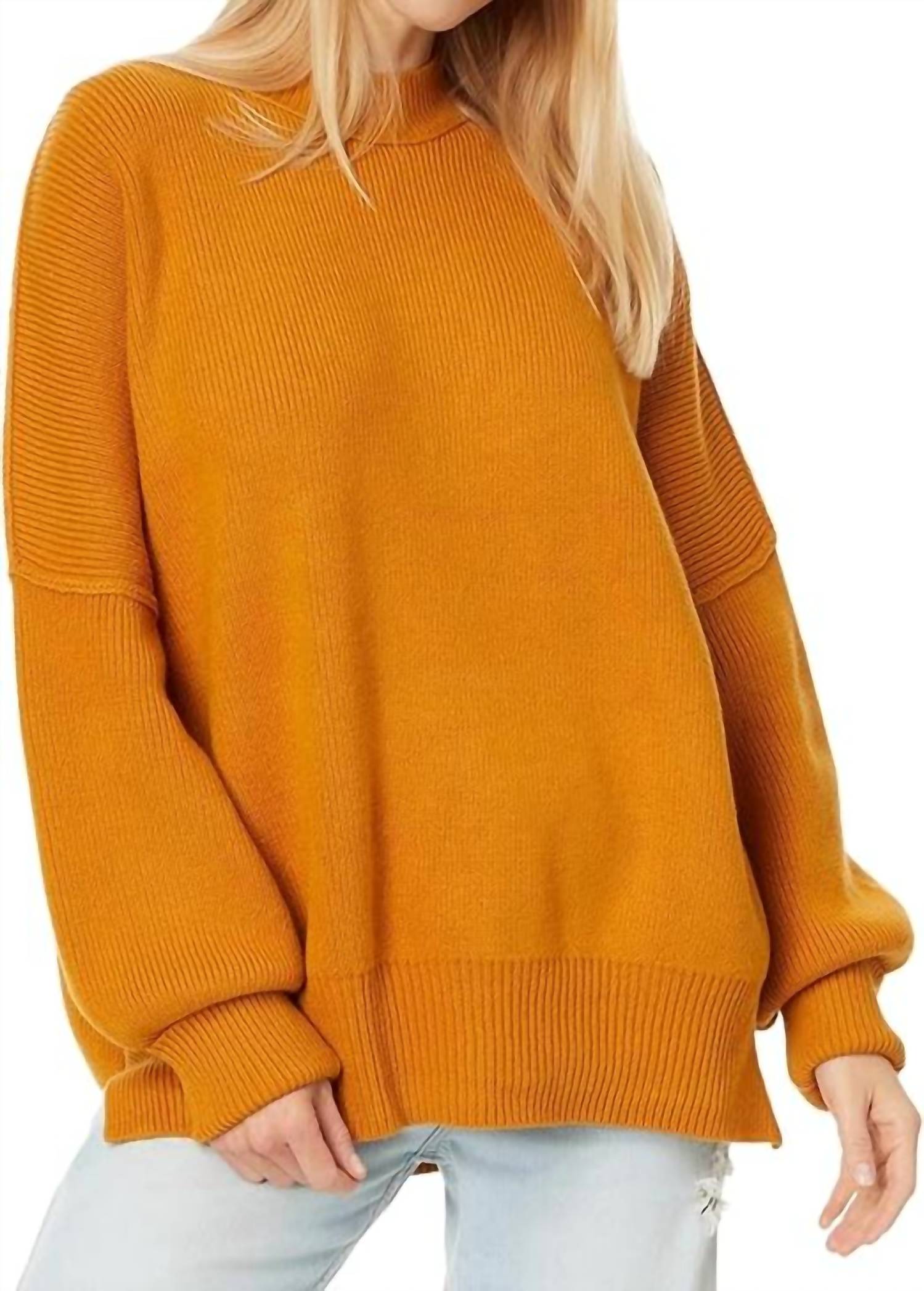 A perfect addition to any wardrobe, this classic tunic style blouse is flattering and effortless. You can easily transition from desk to dinner in this chic top. Striking mustard tunic-length pullover features a ribbed mock neck and long sleeves, ideal for travel and streetwear style. Measures 26.5 inches in length with a sleeve length of 16.5 inches and bust of 68 inches. Pull on. Hand wash cold. Designed with a slouchy silhouette, side vents, and exposed seam detailing for a casually chic look.