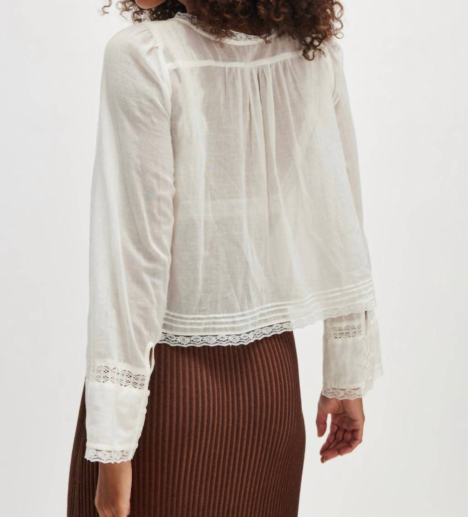 A versatile blouse that works from desk to dinner! Introducing the Evermore Blouse by Free People, a boho-chic addition to your wardrobe in elegant ivory. This long sleeve top, adorned with sheer lace trim, is crafted from 100% cotton, offering both comfort and style. It features a charming square neckline with a tie detail and button closure for effortless wear. Care for this textured piece with a simple machine wash.