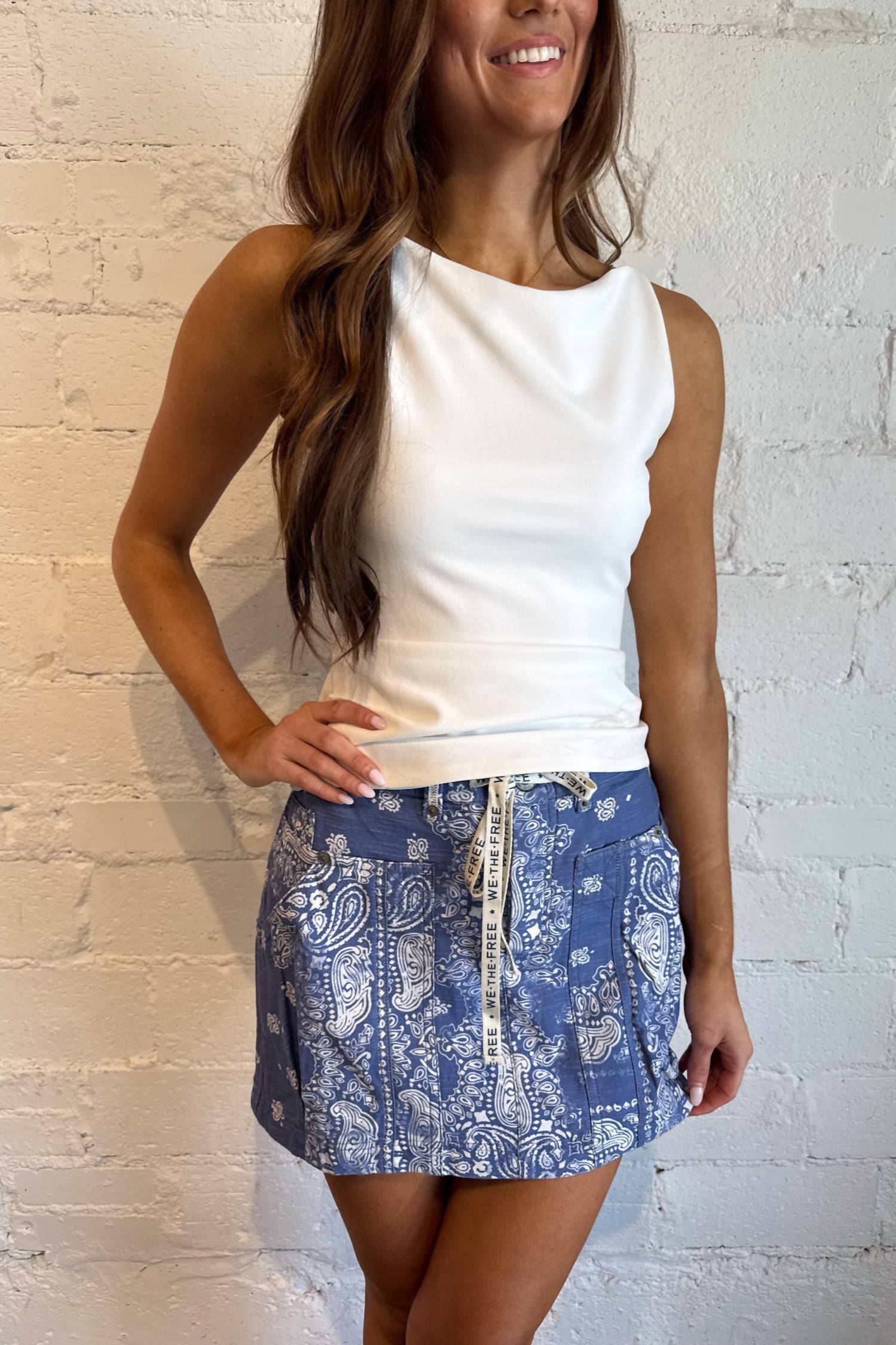 The perfect mini skirt does exist. Elevate your wardrobe with the Free People River Canyon Mini Skirt, a must-have for the modern boho enthusiast. This mini skirt features a high-rise waist and subtle tiered panels that offer a flattering silhouette in a bold, desert-inspired print. Crafted from 55% Linen and 45% Cotton, it offers comfort with an easy pull-on closure. Care: Machine wash cold and line dry for best results. Model Brae is wearing a size small (5’7” height, 34” bust, 25” waist, 35” hips).