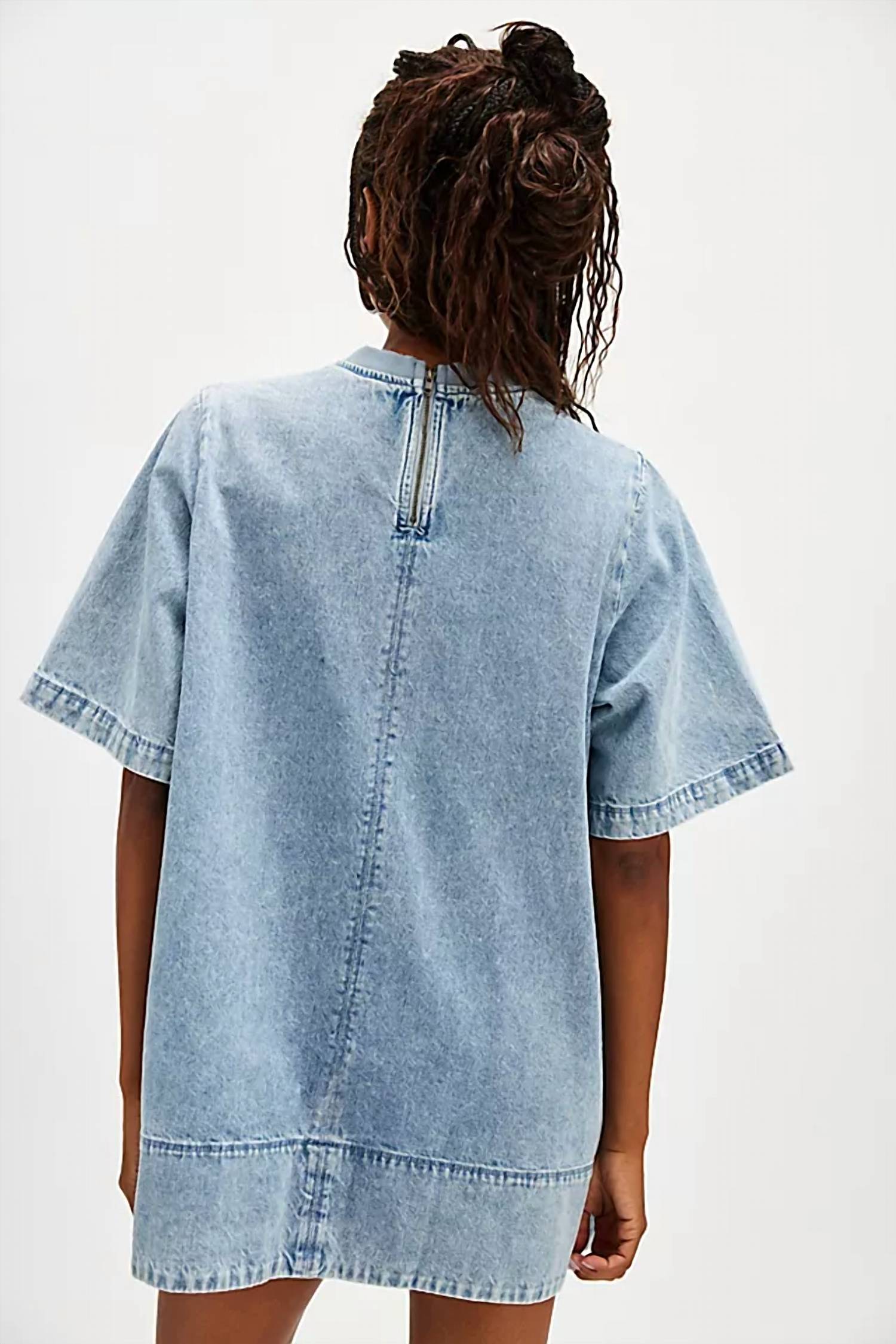 The kind of easy and flattering dress you'll be reaching for all season long. The Harlow Mini Dress by Free People in Ocean Blue is a chic option for your casual collection, boasting short sleeves and a soft denim fabrication. Crafted from 100% Cotton, this shift-style mini dress features a 33.5-inch length and is complete with a ribbed crew-neckline and defined seaming. Made for convenience and style, it includes a handy zip closure at the back of the neck. Designed for easy care, simply machine wash it when necessary.