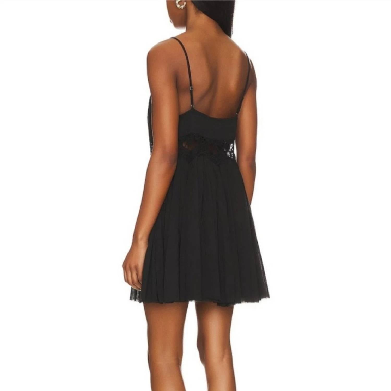 The Ilektra Slip Dress by Free People is a chic addition to your cocktail party wardrobe, featuring delicate spaghetti straps and a scoop neck design. This mini-length dress is crafted from cotton in a classic black with intricate lace details throughout and a raw trim finish. Made from woven fabrication, it reflects a blend of elegance and style while the pull-on closure ensures ease of wear. Machine wash.