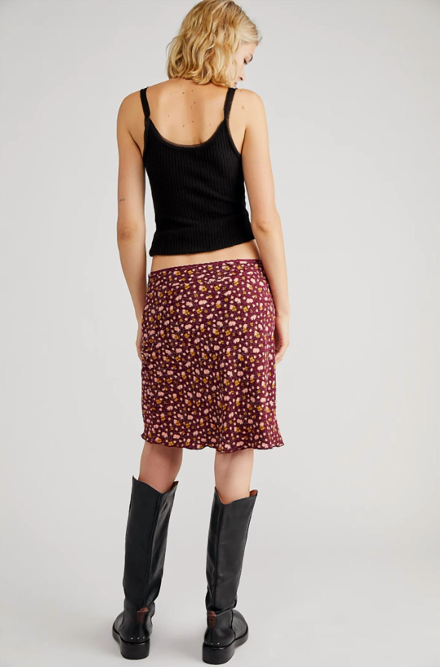 Show just the right amount of leg in this fit flattering mini. Introducing the Irl Mini Skirt by Free People, a low-rise, A-line silhouette designed to transition seamlessly through the seasons. This women's mini skirt features a vintage-inspired floral print in a Plum Combo, complete with a subtle ruffled hemline. The piece is tailored with an invisible side zipper for an elegant finish. Perfect for pairing with cozy sweaters or sleek bodysuits, this skirt is a travel-ready wardrobe essential.