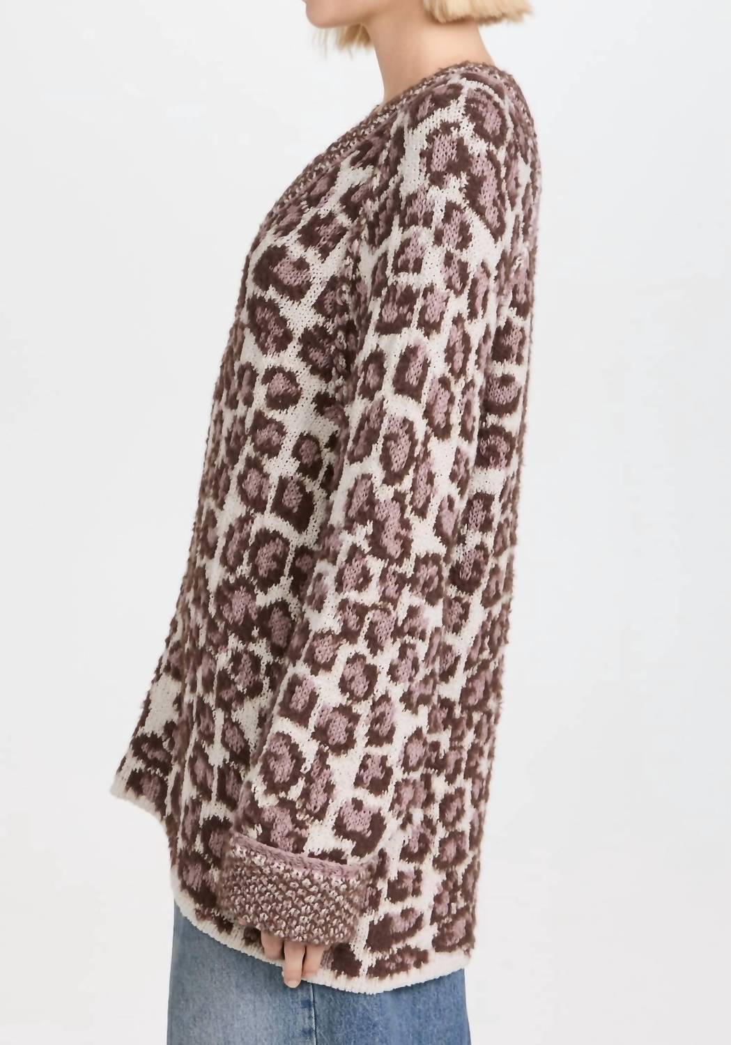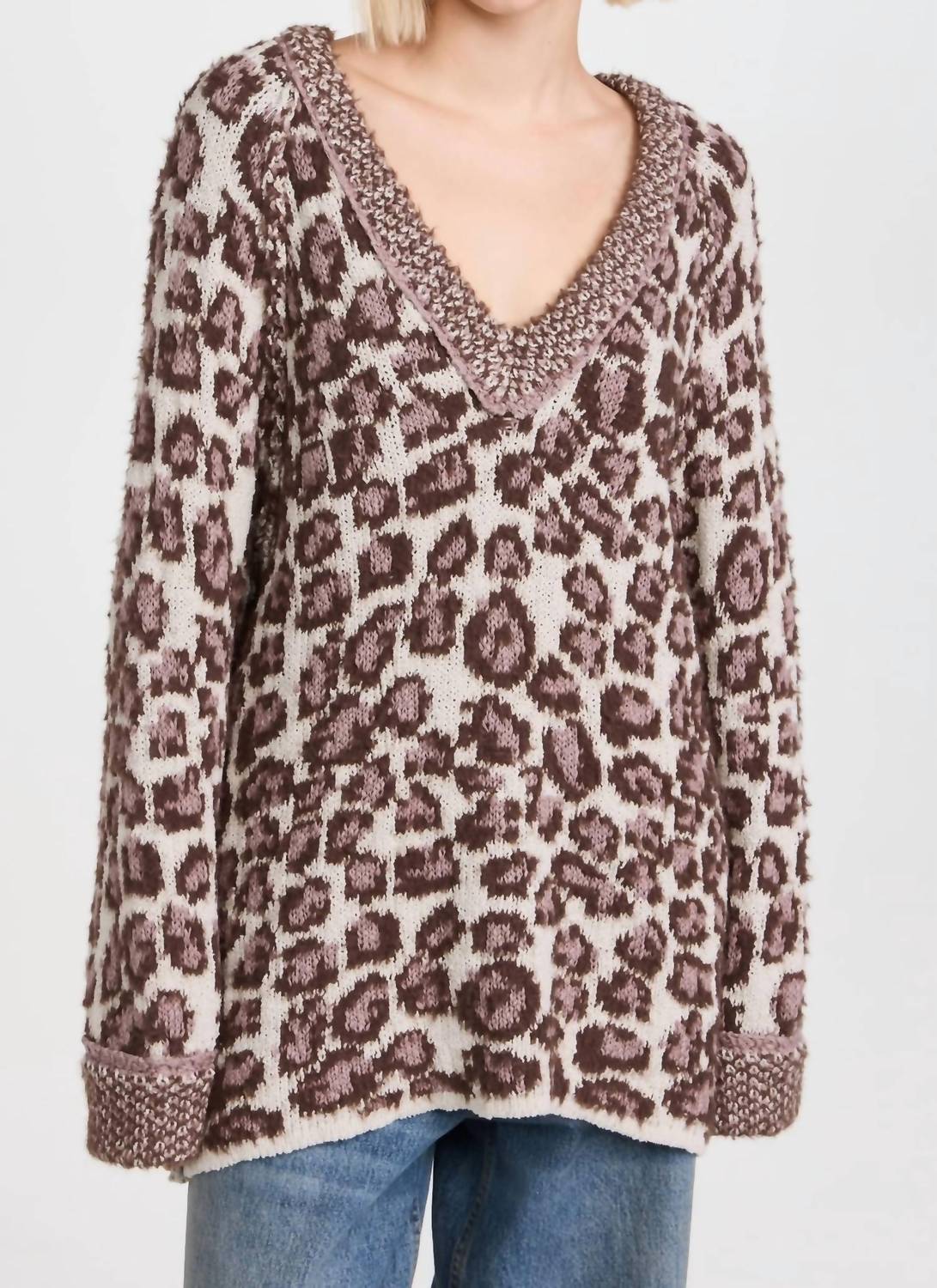 You'll be reaching for this comfy and classic v-neck sweater all season long. Experience the playful style of the Little Animal Pullover Top by Free People, showcasing a modern grey antler combo leopard pattern. This v-neck knit features long sleeves and a mid-weight design for added comfort. Crafted from a cotton blend with 52% cotton, 19% polyamide, 17% acrylic, and 12% polyester, this pullover is easy to wear with a pull-on closure. Made with care, it is imported and should be hand washed. Perfected in length, measuring 25.5 inches from the shoulder for an effortless fit.