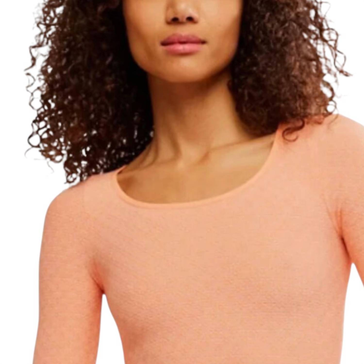 A timeless blouse that will never go out of style. Introducing the Love Letter Long Sleeve Top by Free People, a chic choice for any holiday party or casual day out. This Candied Melon blouse, featuring a scoop neckline and form-fitting silhouette, seamlessly blends timeless style with modern flair. Crafted from a soft and stretchy nylon blend (64% nylon, 28% polyester, 8% spandex), it offers unparalleled comfort with a textured touch. Closure: Pull on. Perfect for layering or solo styling, this cropped top is ideal for the Y2K trend and New Year’s Eve celebrations.