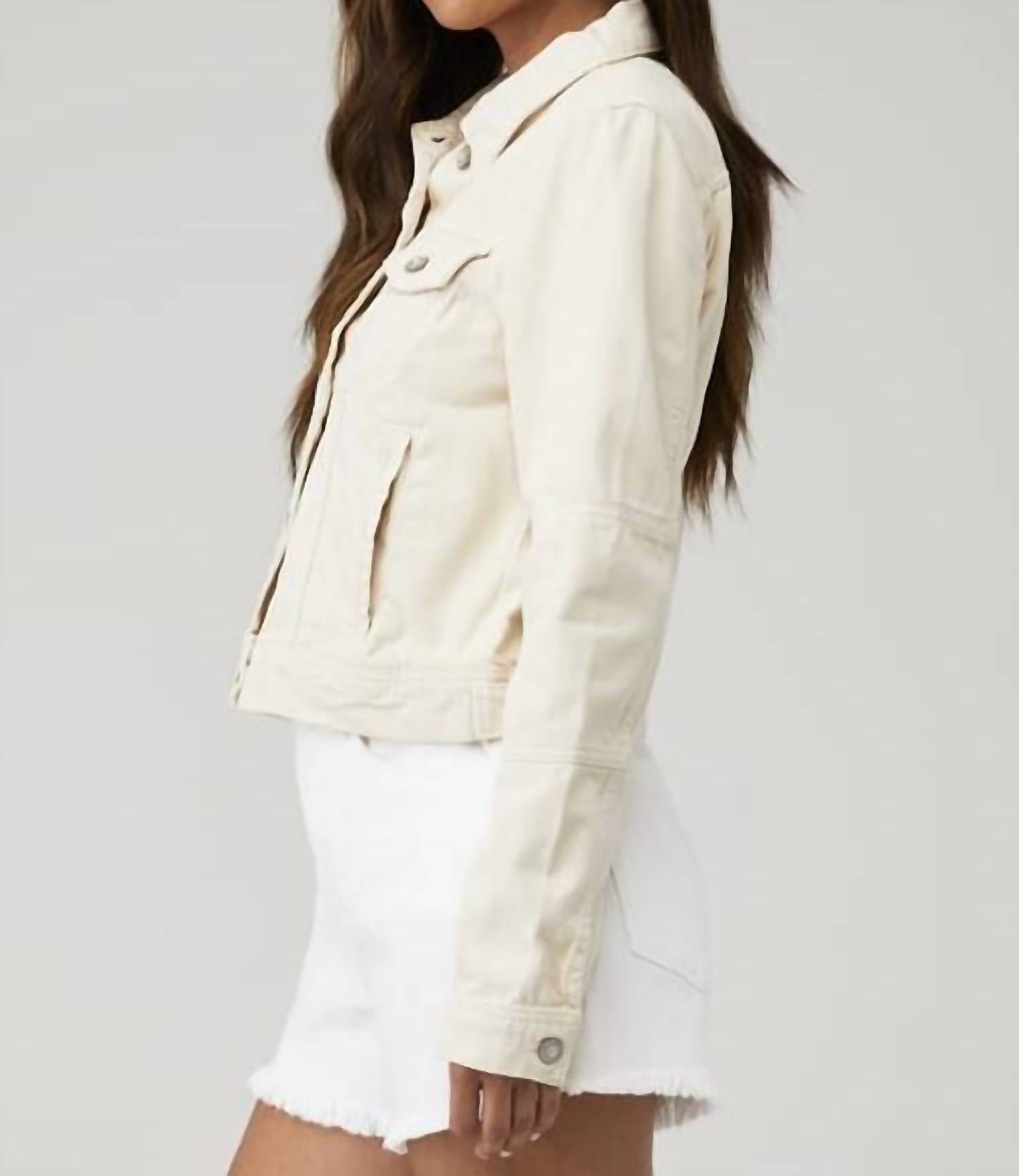 Classic, cool and works with almost any outfit choice. Discover the Rumors Denim Jacket by Free People, a must-have for your fall wardrobe in chic ecru. With long sleeves and a classic collar, this solid pattern jacket is expertly crafted from a comfortable cotton blend. It features exposed front pockets and hidden side pockets for practicality, closed with simple button closures. Care for this versatile piece is effortless—machine wash and tumble dry. Perfect for concerts or any fall occasion.