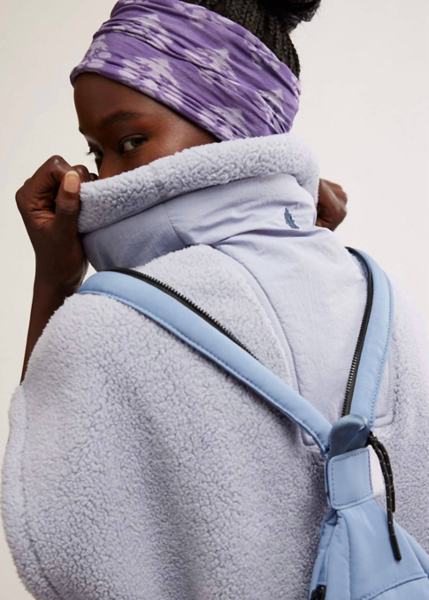 That extra layering piece you didn't know you needed! Discover the Scout It Out Vest by Free People, a wonderful steel-colored statement piece for your ensemble. This sleeveless vest is crafted from 100% polyester curly fleece, offering an oversized fit for ultimate comfort. With a stand collar and a 24-inch length in size medium, it features a button closure for easy wear. Made for versatility and style, it's imported and easy to care for with machine wash and line dry instructions.