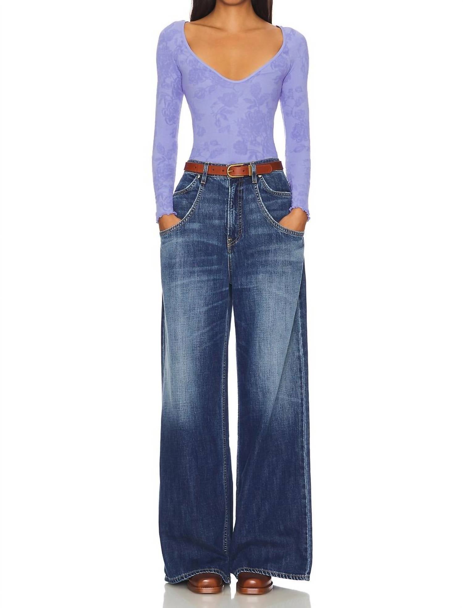 Form fitting and comfortable - this bodysuit check all of the boxes. Embrace elegance with the Send Love Long Sleeve Bodysuit by Free People, a stunning choice in Lolite. Crafted from a comfortable Nylon Blend, this bodysuit showcases a flattering V-neckline and intricate floral embroidery on a jersey fabric. Originating from the US, it features a practical gusset snap button closure with a thong back and charming lettuce trim details. Easy to maintain, simply machine wash to keep it looking its best. 82% Nylon, 10% Polyester, 8% Spandex.