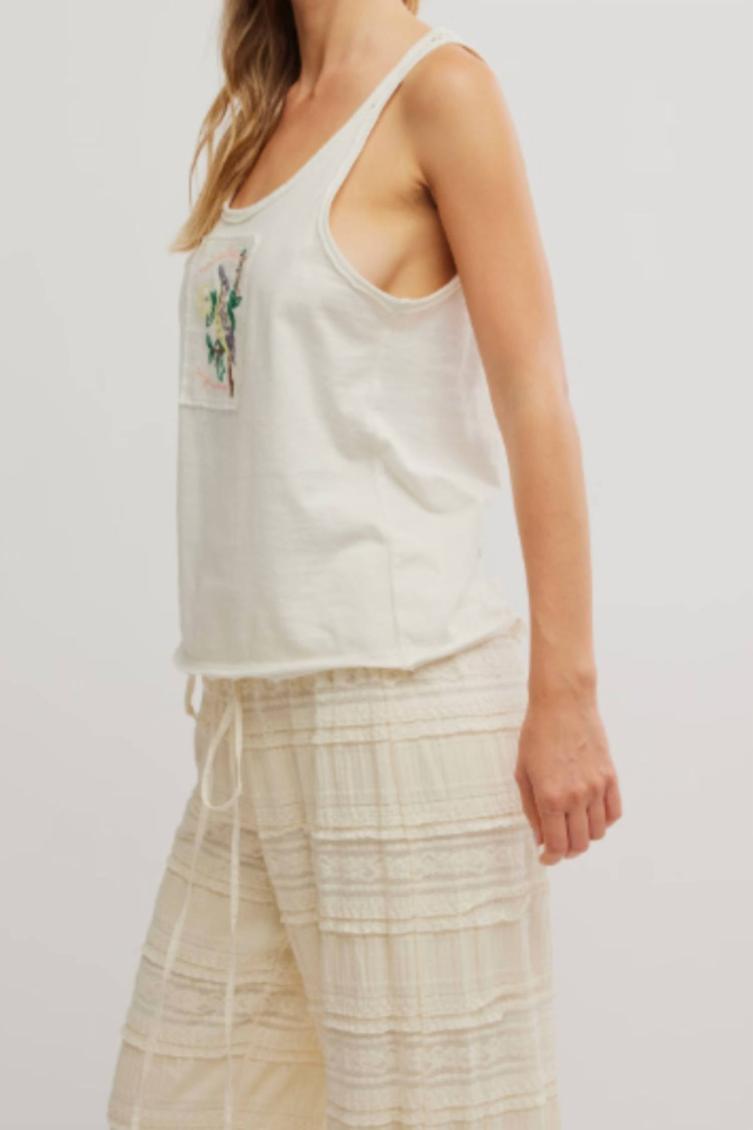 The perfect tank top for those warmer weather seasons. The Free People State Graphic Tank in Ivory Combo is a playful addition to any wardrobe, perfect for showing off your state pride. Crafted from 100% cotton, this sleeveless tank ensures you stay cool and stylish during those summer beach days. Designed with a graphic pattern and a scoopneck, it features a pull-on closure for easy wear. Care instructions include machine wash cold to maintain its fresh look all season long.