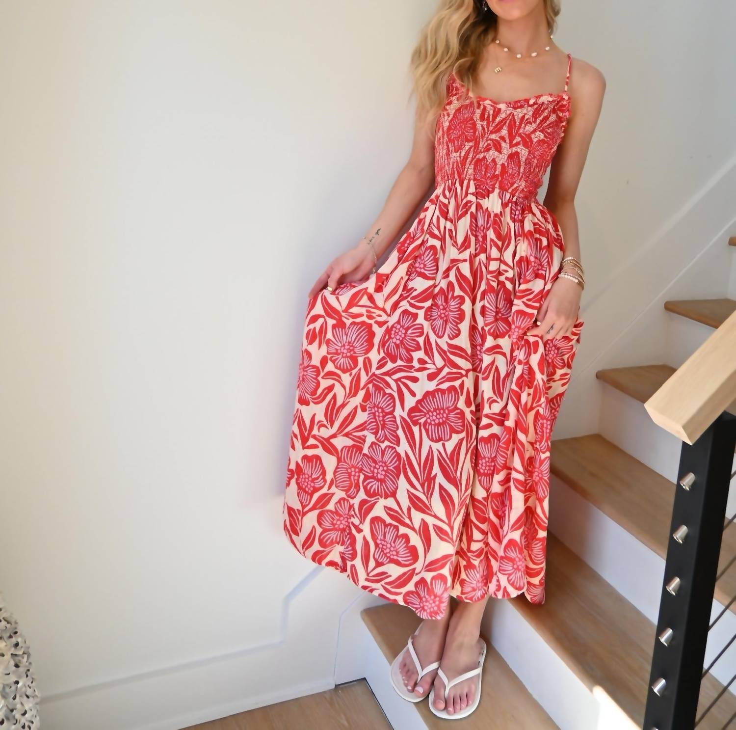 Style this maxi with your favorite statement necklace and sandals for the perfect look. Embrace boho-chic style with the Sweet Nothings Maxi Dress by Free Sport by Gottex, an ideal choice for a summer dinner party. Featuring spaghetti straps and a smocked bodice, this effortless piece is crafted from soft cotton with a charming floral print in a Gardenia Combo. At approximately 47 inches in length, it offers a comfortable pullover style with practical pockets. Made from pure cotton, care is simple with machine wash and tumble dry instructions.