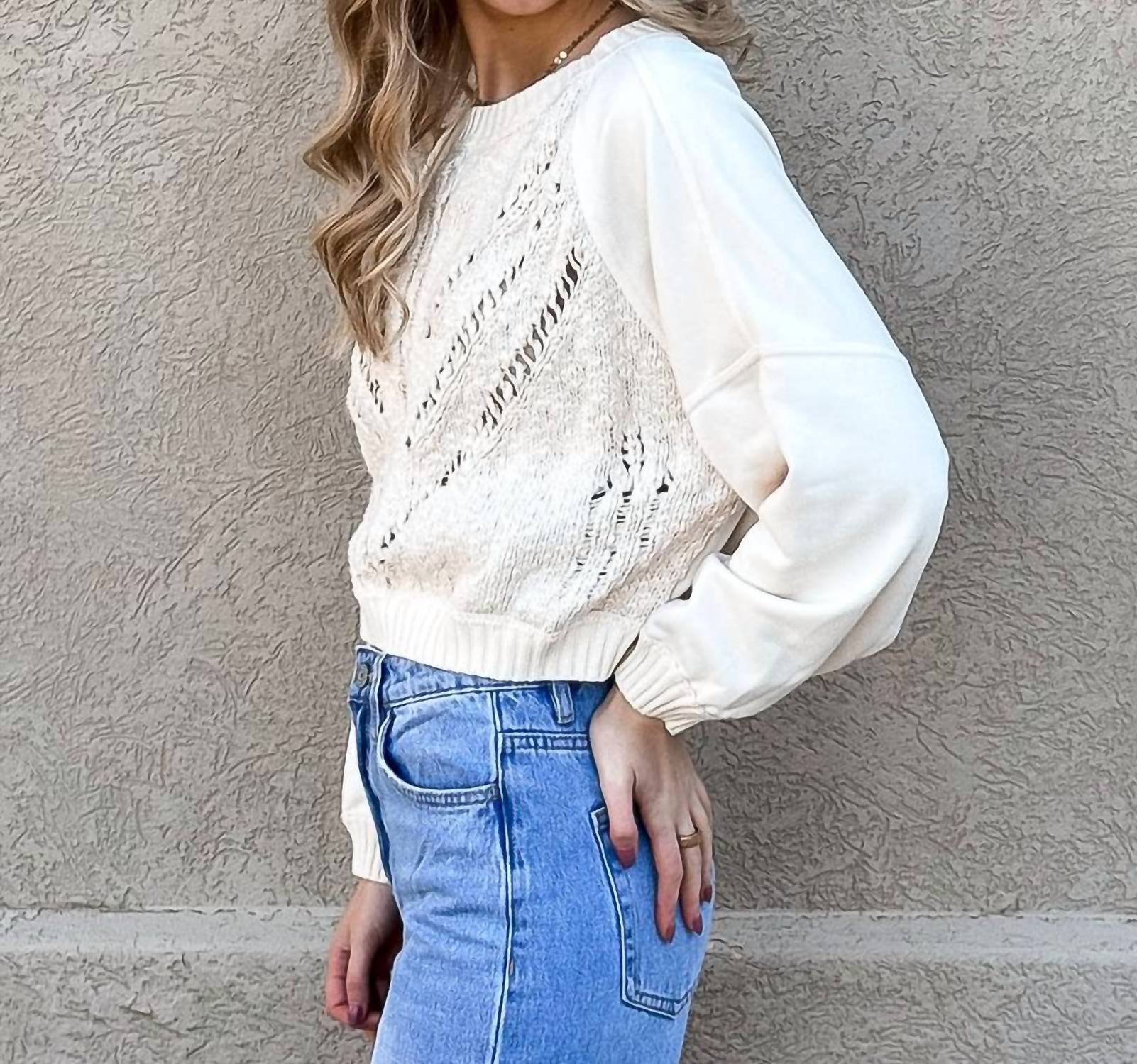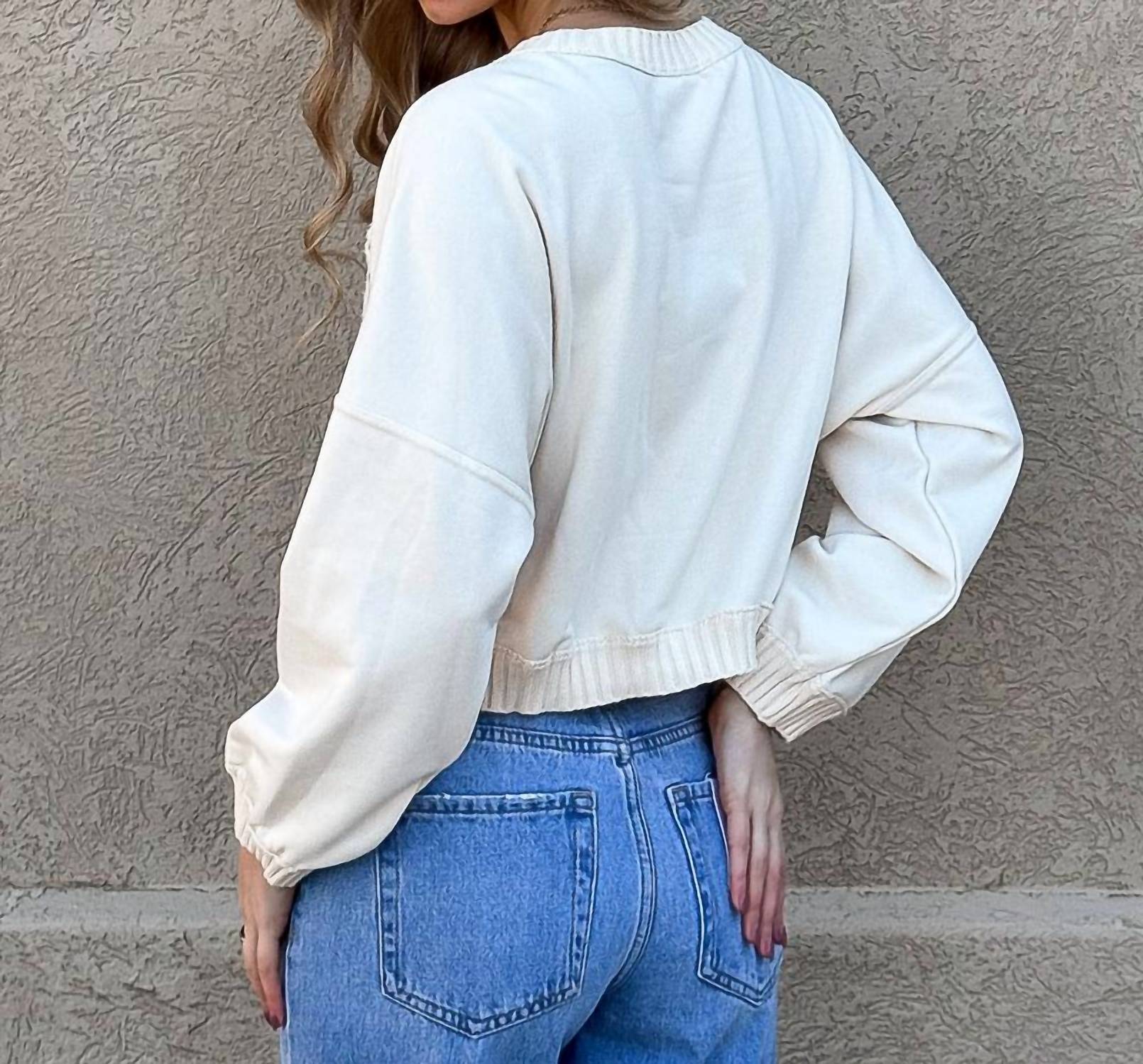 Cooler temps call for layering and we love this adorable sweatshirt for all the obvious reasons. Discover absolute comfort and style with the Free People Sweetness Sweatshirt in Cream, a textured, timeless piece perfect for any occasion. This slouchy, slightly cropped sweatshirt features long raglan-cut sleeves and a scoop neckline, crafted from a soft cotton-blend material. Designed for spring travels and minimalistic trends, it's easy to wear with a cozy pull-on closure. Made in a lightweight fabric with ribbed trim and contrast knit piecing, this versatile top adds a unique touch to every outfit.