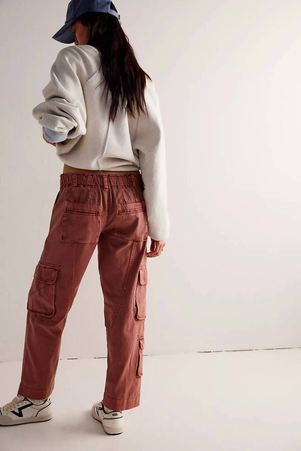 Stay on-trend and showcase your impeccable taste with these adaptable and stylish cropped pants. The perfect length to wear with your favorite mules. You'll love the fit! Discover the Tahiti Cargo Pants by Free People, a standout summer essential in a rich Auburn hue for any music festival or casual outing. These pants, crafted from 100% cotton, feature a relaxed straight-leg silhouette with a low rise and a comfortable smocked waist. With practical utility-style oversized pockets and a convenient zip fly with button and drawstring closure, they're as functional as they are stylish. With a rise of 10" and an inseam of 29.5", these ankle-length pants combine '90s fashion with modern utility and are machine washable for easy care.