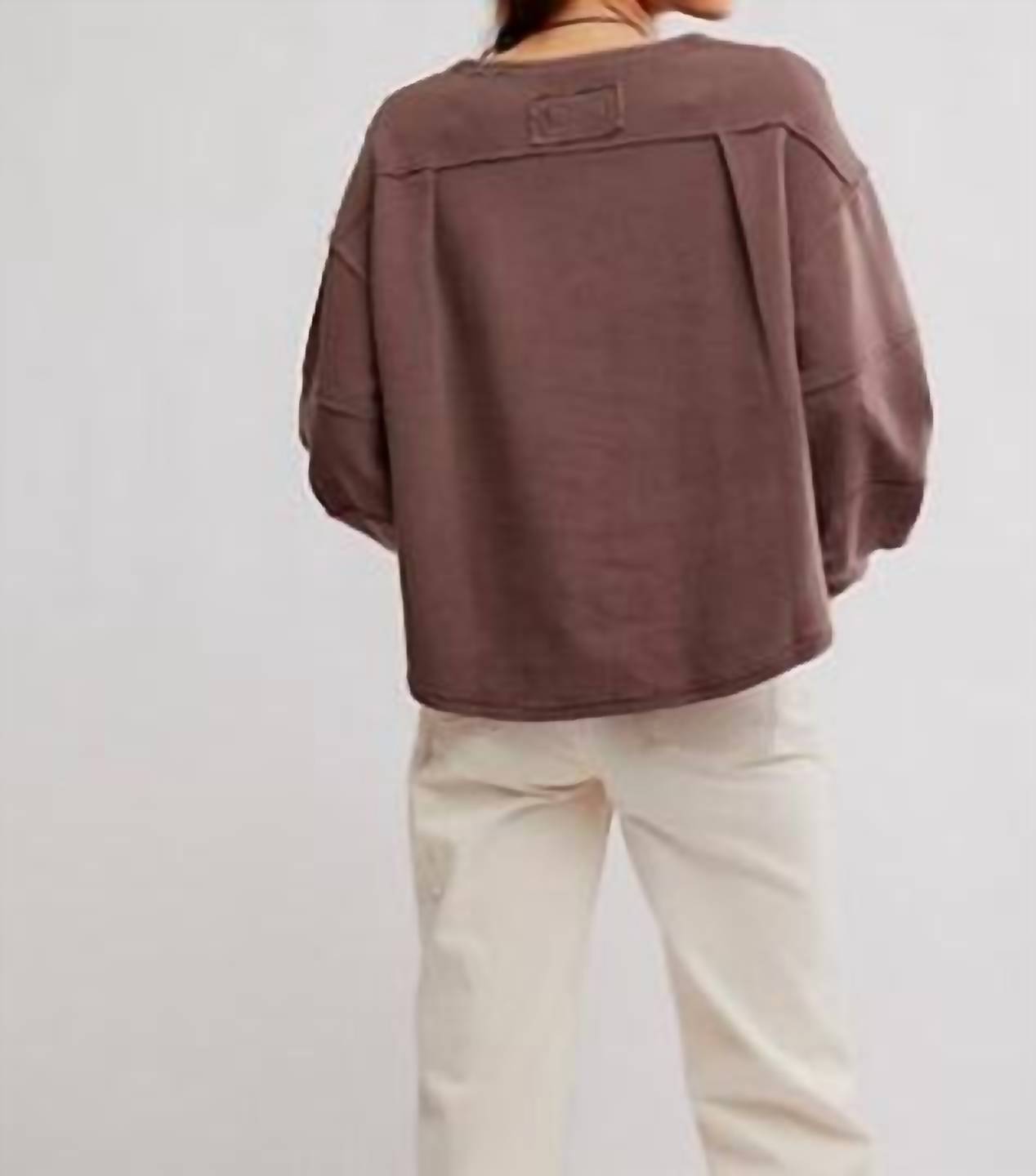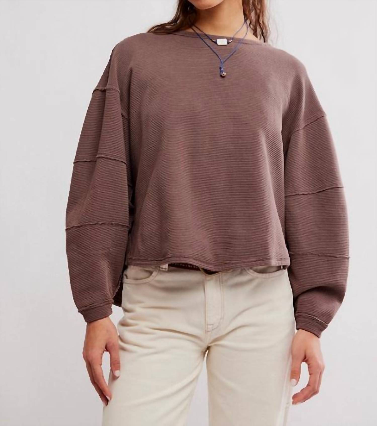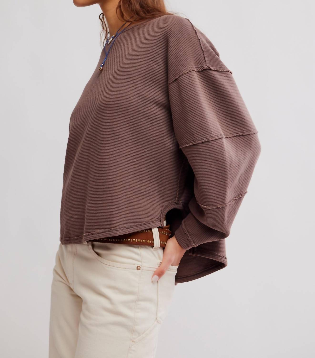 Great fit, cute design, soft fabric. You'll love everything about this long sleeve tee. Introducing the Total Eclipse Long Sleeve Tee by Free People, a must-have for effortless style in timeless Oil Green. Crafted from 100% Cotton, this tee showcases long sleeves with drop shoulders and a scoop-neckline, complemented by ribbed fabrication and defined seams with raw trim. The oversized, slouchy silhouette makes it perfect for layering throughout the seasons. Care: Machine wash cold. Closure: Pull-on. Bust measurement is 54 inches, length is 26.25 inches, with sleeve length at 21.5 inches for size small.