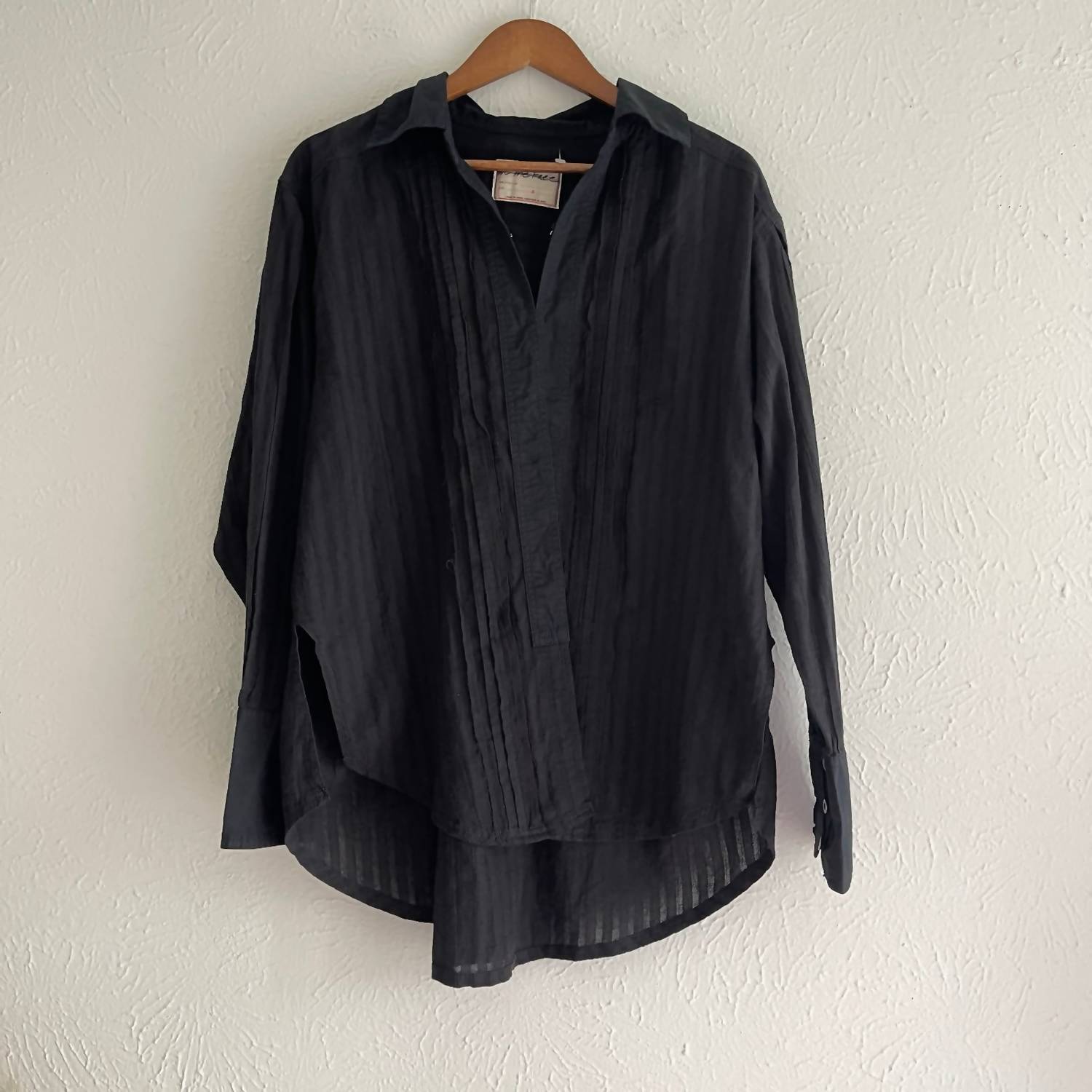 A versatile blouse that works from desk to dinner! Meet the Tuxy Vibes Shirt by Free People, a chic and versatile long sleeve blouse that elevates any wardrobe. Crafted from 100% cotton, this black combo shirt features tuxedo-inspired details and a sophisticated shirttail hemline. Designed for women with a slightly oversized fit, it includes a side zipper closure for ease. Care for this timeless piece with a machine wash cold and a gentle line dry, and finish with a warm iron as needed. Measurements for size X-Small: Chest- 24 in., Length- Front- 26 in., Back- 29.5 in.