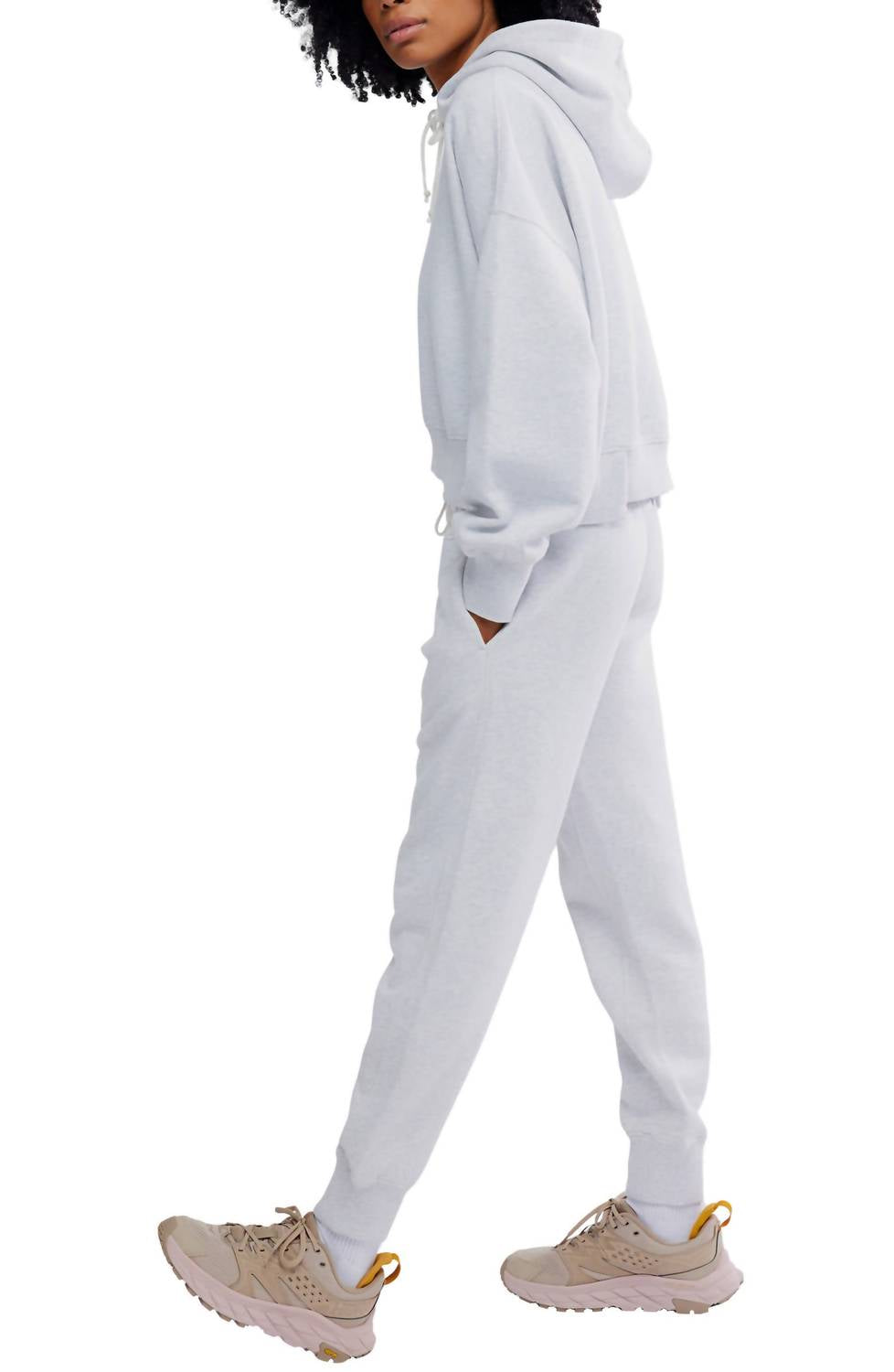 Experience ultimate comfort with the Free People Undefeated Set, a perfect blend of style and coziness in light heather gray. This women's loungewear set features long sleeves with ribbed cuffs on the hoodie and slouchy joggers with an elastic waist, designed in soft, cotton-forward fleece. Made from 80% cotton and 20% polyester, this imported set is easy to care for—simply machine wash and tumble dry. Hoodie: 20 1/2" length; Joggers: 27 1/2" inseam, 10" leg opening, 11" front rise, 13" back rise.
