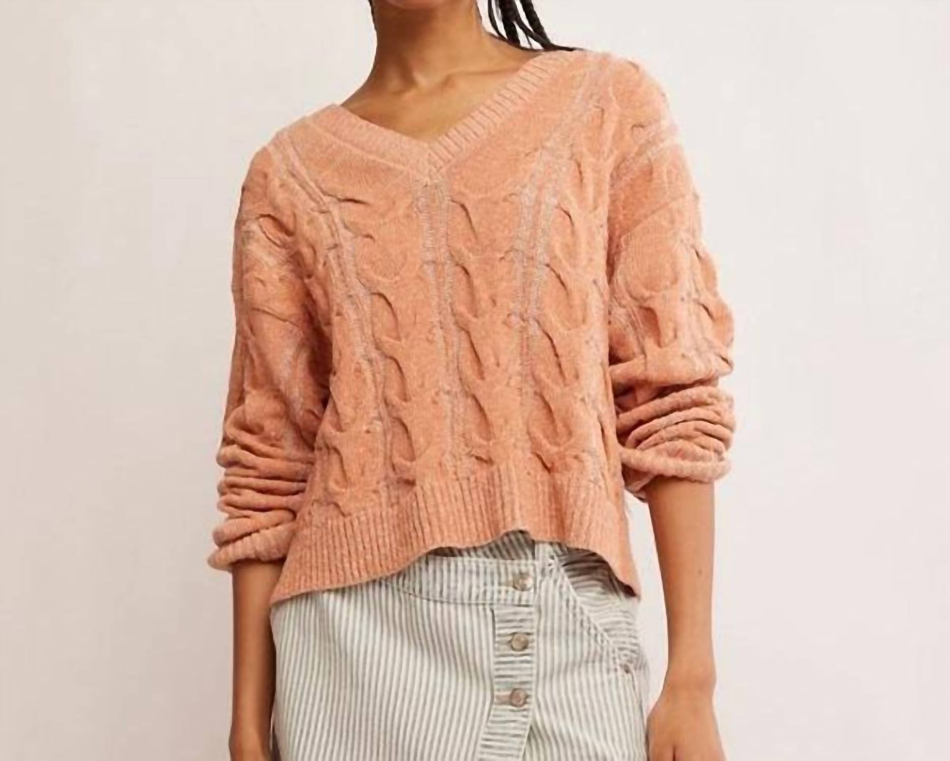Embrace minimalist style with the Washed Cable Sweater by Free People, a perfect choice for spring vacations. This candied melon-colored sweater features a textured, v-neck design with long sleeves for added comfort. Made from 100% cotton, it offers a breathable and soft feel. With a pull-on closure and no pockets, this sweater is an effortless addition to any woman's wardrobe.