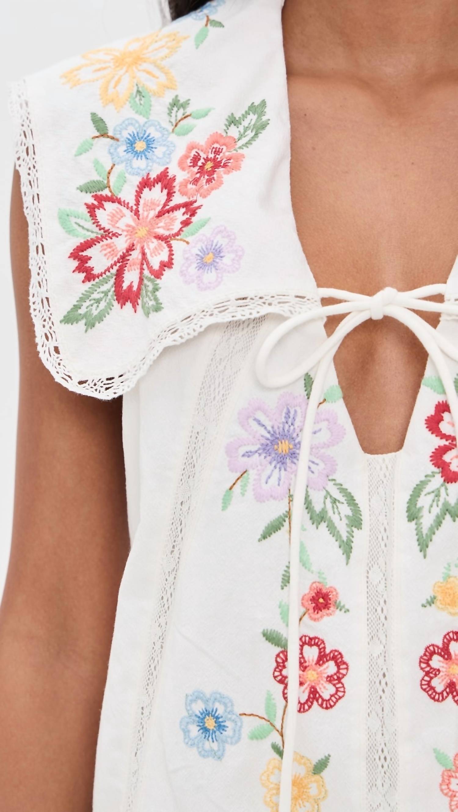 The kind of easy and flattering dress you'll be reaching for all season long. Step into summer with the Willow Emb Mini Dress by Free People, a charming piece in elegant ivory. This sleeveless mini dress showcases intricate allover floral embroidery with a delightful lace trim. Crafted from 100% cotton and lined with rayon, it features a practical tie closure and a convenient hook-and-eye with a hidden side zipper. Care for this imported, boho chic dress by washing it in cold water.