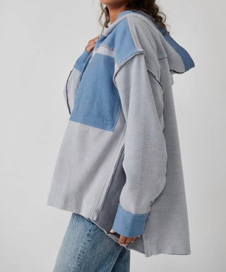 Free People - Corduroy Trim Oversize Hooded Sweatshirt