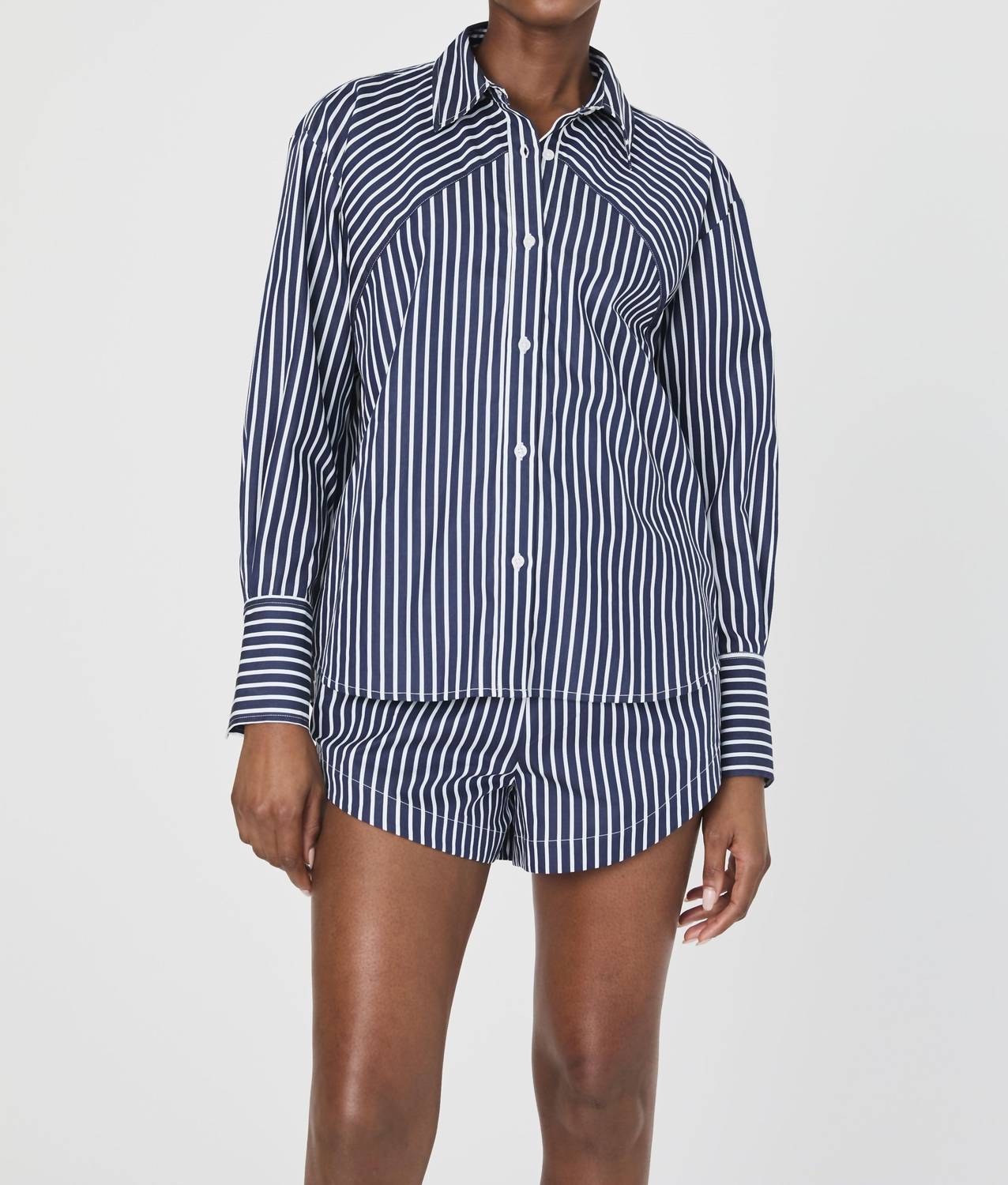 High-waist is here to stay and we especially love this style short. Discover the Alexis Cotton Short by FRENCH CONNECTION, perfect for infusing a fresh and stylish touch to your wardrobe. Crafted from pure cotton, these high-waist shorts feature a chic stripe pattern in marine and white. Designed with convenient pockets, they offer a functional and fashionable option for casual outings. The tie closure adds an adjustable fit, ensuring comfort throughout the day.