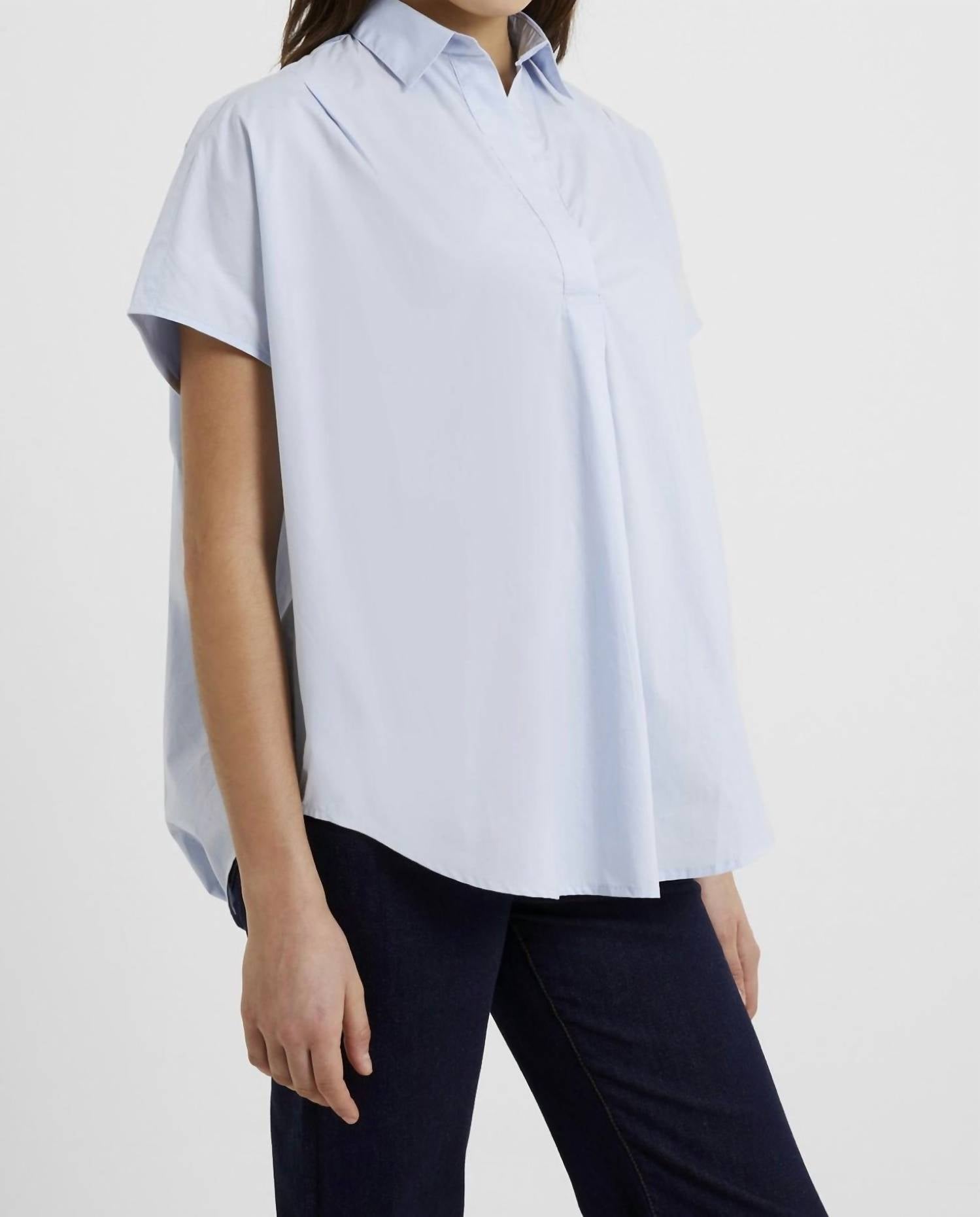 A versatile blouse that works from desk to dinner! Spread collar with V-neck. Short sleeves. Shirttail hem. Made in India. 100% cotton