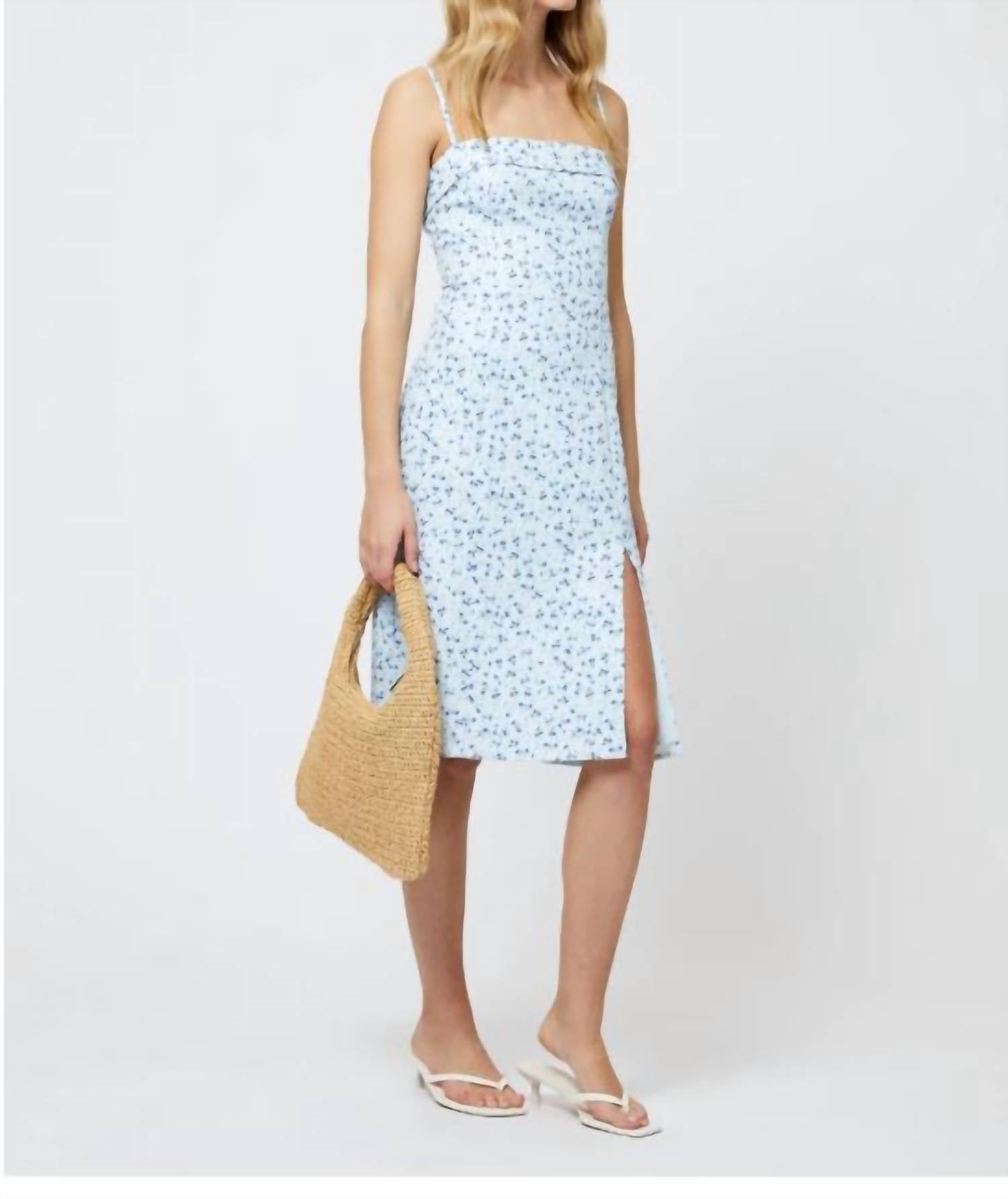 Just add slides or mules and you are good to go. Delicate spaghetti straps and layered square neckline. Crafted from 88% Polyester and 12% Elastane, this icy blue multi floral print dress features a comfortable smocked back and a stylish front slit. The midi length, measuring 81 cm for size 10, offers elegance with ease of movement. Side zipper. Machine wash.