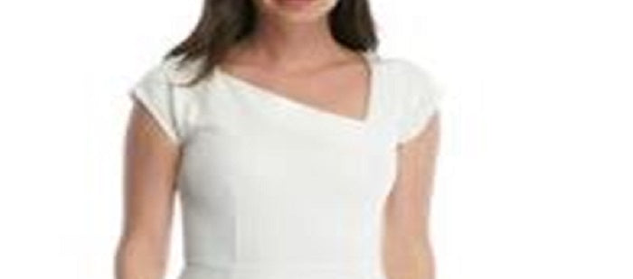 Hidden back-zip closure|Asymmetrical neckline|cap sleeves