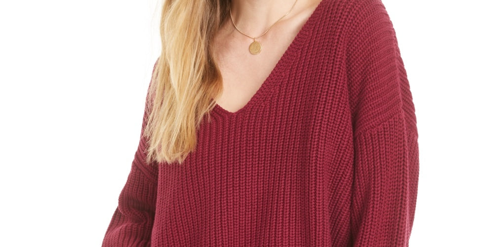 French Connection Women's Millie Mozart Rib V-Neck Sweater Brown Purple Size X-Small