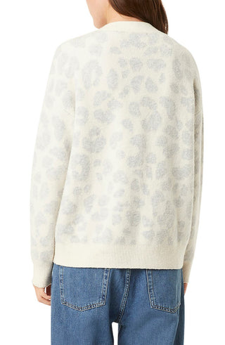 French Connection Women's Animal Print Long Sleeve V Neck Sweater Beige Size Medium