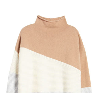 French Connection Women's Patchwork Funnel Neck Sweater Brown Size Medium