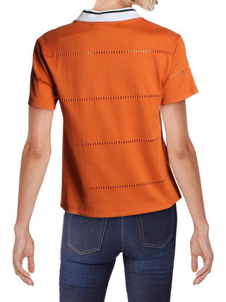 French Connection Women's Jersey Textured Ribbed Ladder Stitch Short Sleeve Crew Neck Crop Top Orange Size Large